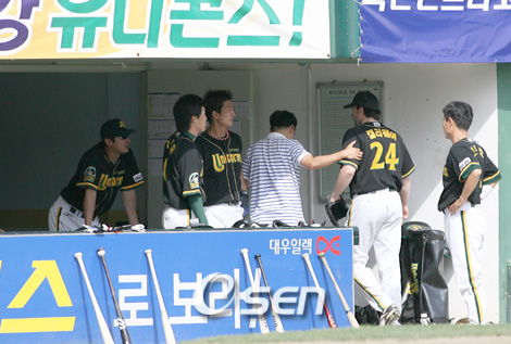 묘한 일이다. 그가 등판하는 날이면 야수들의 실책이 속출한다. 현대 외국인 우완 선발 투수 캘러웨이(31)가 수비들의 잇단 실책성 플레이에 열받고 있다. 이상하게도 올 시즌 캘러웨이 등판 경기때면 수비수들의 실책 플레이가 속출한다. 9일 부산 사직구장 롯데전도 마찬가지였다. 3회 2실점할 때는 3루수 정성훈의 실책이 빌미가 된 것을 비롯해 7회에는 포수 김동수의 패스트볼에 이은 유격수 서한규의 어설픈 플레이 등 캘러웨이를 ‘열받게’하는 플레이의 연속이었다. 야수들의 실책성 플레이에 화가 난 캘러웨이는 글러브를 손바닥으로 치면서 열을 식히는 모습이 역력했다. 거기다 공격에서는 7회까지 단 1안타로 롯데 선발 이상목의 쾌투에 눌려 점수 지원까지 해주지 않으니 캘러웨이로선 속에 불이 나는 것은 당연한 일이었다. 캘러웨이는 지난 6월 25일 잠실 두산전 때도 중견수 이택근의 수비위치에 열받아 스스로 무너지며 강판(사진)하는 등 올 시즌 수비와 공격 지원을 제대로 받지 못하고 있는 실정이다. 그탓에 캘러웨이는 호투하고도 승수를 챙기지 못해 현재 7승에 머물고 있다. 캘러웨이와 현대 야수진간의 엇박자가 언제즘 끊어질지 궁금하다. sun@osen.co.kr