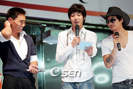 오는 9월 16일 장충체육관에서 벌어지는 K-1 파이팅 네트워크 KHAN 2006 in seoul 대회서 이종격투기 데뷔전을 치를 전 프로복싱 WBA 세계챔피언 최용수가 11일 저녁 서울 동대문 두산타워 야외 무대에서 출정식을 가졌다. 최용수와 절친한 인기 듀오 '듀크'가 최용수를 위해 만든 '마이웨이'가 들어있는 최신 앨범을 선물로 주자 최용수가 웃음 짓고 있다./주지영 기자 jj0jj0@osen.co.kr