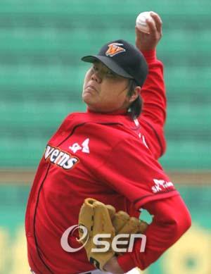 [OSEN=광주, 이선호기자]‘4강이 보인다’. SK가 4위 KIA를 잡고 시즌 34일만에 5위에 올랐다. SK는 11일 KIA와의 광주경기에서 선발 채병룡의 호투와 카브레라의 깔끔한 마무리, 정근우의 2타점 3루타 등 초반 뽑은 점수를 잘 지켜 4-3으로 한 점 차 승리를 거두었다. SK는 44승1무46패를 거두고 지난 7월 8일 이후 34일만에 5위에 복귀했다. 특히 KIA(41승41패3무)에 한 게임 차로 따라붙어 역시 SK에 반 게임 차 뒤진 두산까지 세 팀의 뜨거운 4위 전쟁이 펼쳐질 것으로 보인다. 상승곡선을 긋는 팀끼리 격돌로 경기 전 팽팽한 접전을 예상했다. 그러나 KIA 선발투수 장문석이 갑자기 1회를 마치고 어깨 통증을 호소하고 강판, 승부의 흐름이 SK쪽으로 흘렀다. 2회까지 득점을 내지 못한 SK는 3회초 박재상의 중전안타와 2사후 이진영의 좌중간을 가르는 2루타로 먼저 한 점을 뽑았다. 4회 공격에서도 볼넷과 사구, 희생번트로 만든 1사 1,2루에서 정근우의 우중간 3루타로 2득점, 3-0으로 앞서갔다. 이어진 찬스에서 박재홍의 좌익수 희생플라이로 한 점을 보태고 4-0으로 점수를 벌렸다. 4회까지 채병룡에게 눌려 득점 기회를 잡지 못한 KIA도 5회 반격에 나섰다. 김원섭의 우익수 키를 넘는 2루타와 1사후 차일목의 중전적시타로 한 점을 따라 붙고 한규식의 볼넷과 폭투로 만든 1사 2,3루에서 이용규의 왼쪽 담장까지 굴러가는 2루타로 3-4까지 추격했다. 이후는 양 팀은 다시 소강 상태에 빠졌다. 찬스를 잡아도 득점타로 연결되지 않았고 불펜 투수들이 차례로 마운드에 올랐다. SK는 채병룡이 6회까지 막고 7회부터 이영욱 정우람 조웅천을 차례로 올렸다. KIA도 박정태와 이상화가 나서 SK를 무실점으로 막았다. SK는 9회말 마무리 카브레라를 올려 굳히기에 들어갔다. 카브레라는 최고 153km짜리 강속구를 뿌리며 KIA 세 타자를 가볍게 무안타로 마무리, 한 점 차 승리를 지켰다. 채병룡이 6이닝 3실점으로 시즌 4승째(4패)를 올렸다. ■게임노트 ◆…경기 후 조범현 SK 감독은 힘든 듯 담배를 피우며“매일 매일 힘든 경기를 하고 있다. 선수들이 이기는 의지가 강했다”고 말했다. 서정환 KIA 감독은 “SK 투수들을 공략하지 못해서 졌다”고 패인을 밝혔다. ◆…KIA 주전포수 김상훈(29)이 11일 연년생으로 두 번째 아들을 얻었다. 부인 김주영(27) 씨는 이날 새벽 2시 30분 광주시 남구 방림동 소재 그린산부인과에서 몸무게 3.5kg의 건강한 아들을 출산했고 산모와 아이 모두 건강하다. 지난해 5월 첫 아들을 얻었던 김상훈은 “큰 아이에 이어 둘째 아이도 예쁘게 키우겠다”고 소감을 밝혔다. ◆…KIA 선발 장문석이 피칭 도중 갑자기 어깨 통증을 일으켜 강판했다. 장문석은 1회초 피칭을 마치고 오른쪽 어깨 뒤쪽에 통증을 호소하고 2회부터 마운드를 이동현에게 넘겼다. 장문석은 일단 12일 오전 정밀검진을 받는다. sunny@osen.co.kr 채병룡.