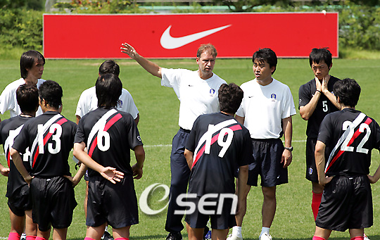 대만과의 아시안컵 B조 예선 2차전(16일.타이베이)에서 3-0으로 낙승을 거둔 베어벡호가 다음 달 2일 '강적' 이란과 맞붙는다. 대만전서 이기긴 했지만 국제축구연맹(FIFA) 랭킹 144위를 상대로 만족스럽지 못한 내용에 대한 비판이 나오고 있는 가운데 베어벡호는 FIFA 랭킹만 따지자면 호주(37위)에 이어 아시아 '넘버 2'인 이란(45위)과 대결해 전력을 평가받는다. 이미 맞붙었던 같은 조의 시리아 대만이 한두 수 아래의 팀이라면 이란은 조 선두 경쟁을 벌일 유일한 팀이다. "아시안컵 본선 우승이 목표"라고 당당히 밝힌 베어벡 감독으로선 조 1위로 통과하기 위해선 이란을 반드시 꺾어야 한다. 특히 이란과의 3차전은 베어벡 감독의 국내 데뷔전이어서 부담이 클 수밖에 없다. 더욱이 독일 월드컵에서 참가했던 이란은 이날 약체 시리아와의 2차전에서 1-1로 비겨 자존심을 구긴 상황. 이란은 또한 지난해 10월 '아드보카트호'의 데뷔전에서 제물이 된 바 있어 벼르고 나올 것이 분명하다. 이에 따라 베어벡 감독은 대만전과 달리 이란전에는 유럽파를 총출동할 예정이다. 당일은 FIFA에서 정한 'A매치 주간'이기 때문에 이들을 소집하는 데 걸림돌이 없다. 나흘 뒤 열리는 대만전에도 이들을 활용할 수 있다. 이들 박지성(맨체스터 유나이티드) 이영표(토튼햄) 설기현(레딩) 등 '프리미어리그 3총사'와 '분데스리거' 차두리(마인츠)이 가세한다면 베어벡 감독은 슬로건으로 내민 '생각하며 이기는 축구(Thinking, Winning)'를 한층 더 구현할 수 있다. 창조적인 플레이가 눈에 띄는 박지성과 측면에서 영리한 플레이로 공수를 조율하는 이영표, 오른쪽 풀백으로 변신한 차두리, 프리미어리그 '밥'을 먹는 설기현은 기존 대표팀 전력에 가세해 '시너지 효과'를 줄 것이 예상된다. 그렇게되면 '2% 부족했다'는 평을 받고 있는 베어벡호는 아드보카트호가 그랬듯 이란을 제물로 순항을 거듭할 수 있다. 아드보카트호는 당시 이란전 승리를 앞세워 독일 월드컵 본선 진출국이었던 세르비아와 스웨덴을 상대로 1승1무를 거두는 성과를 거둔 바 있다. 2경기만에 제대로 된 적을 만나는 베어벡호가 유럽파를 수혈해 '진짜 실력'을 펼쳐보일 수 있을지 관심을 모은다. iam905@osen.co.kr
