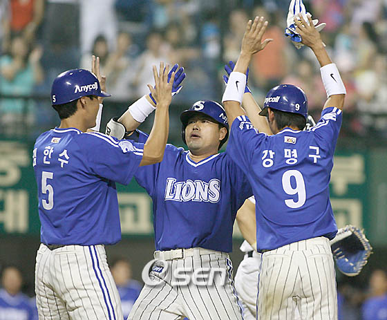 삼성 간판스타 양준혁이 결승 스리런홈런을 터뜨리면서 삼성의 짜릿한 역전극을 이끌었다. 양준혁은 18일 잠실 두산전에서 2-2 동점이던 8회 2사 1,3루에서 김창희 대신 대타로 등장, 상대 마무리 정재훈을 상대로 장쾌한 우월 3점포를 작렬했다. 양준혁의 홈런 한 방으로 삼성은 경기를 뒤집은 뒤 9회 4점을 추가, 9-2로 이겼다. 최근 3연승 행진. 7회까지 두산 선발 이혜천에 막혀 1-2로 뒤진 삼성은 8회 올 시즌 최강팀 다운 면모를 과시했다. 이혜천 대신 김승회가 투입되자 1사 뒤 조동찬이 볼넷, 진갑용은 급히 마운드에 오른 정재훈으로부터 중전안타를 때려 분위기를 달궜다. 김한수 마저 볼넷을 얻어 상황은 1사 만루. 후속 박진만이 우익수 큼직한 희생플라이로 경기를 원점으로 돌리자 삼성 덕아웃은 승부수를 뒀다. 우타자 김창희 대신 베테랑 양준혁을 투입, 결승점을 노렸다. 양준혁은 기대를 저버리지 않았다. 볼카운트 0-1에서 2구째를 통타, 우측 스탠드 중잔에 떨어지는 120m 짜리 3점아치로 전세를 뒤집은 것. 시즌 20번째이자 통산 530번째 대타 홈런. 양준혁 개인으로선 지난 1994년 5월19일 대구 LG전 이후 2번째 기록이다. 끌려가던 경기를 뒤집은 삼성은 결국 두산의 막판 반격을 틀어막고 연승 가도를 씽씽 질주했다. 불펜의 방화로 승리가 날아갔지만 이혜천으로서도 소득은 있었다. 이날 7이닝을 6피안타 3볼넷 1실점으로 틀어막은 그는 시즌 방어율을 2.26(종전 2.33)으로 낮히며 이날 대전 LG전서 5⅔이닝 2실점을 기록, 2.38(종전 2.35)로 높아진 류현진과의 격차를 더욱 벌렸다. 이날 이혜천은 4회와 7회를 제외한 매 이닝 주자를 내보냈으나 완급조절 투구가 빛을 발하며 실점을 최소로 묶었다. 1, 2회 연속 득점권에 주자를 내보내고도 점수를 허용하지 않은 그는 3회 선취점을 내줬다. 2사 1루서 박한이에게 2루 도루를 허용한 뒤 조동찬에게 좌전 적시타를 허용한 것. 그러나 나머지 3이닝 동안 추가 실점을 억제하면서 방어율 1위를 고수할 수 있었다. 두산은 0-1로 끌려가던 6회 경기를 원점으로 돌렸다. 삼성 선발 정홍준이 물러난 뒤 투입된 권오준을 상대로 홍성흔이 좌월 115m짜리 솔로홈런을 터뜨려 타이를 이뤘다. 7회에는 1사 뒤 상대 실책으로 진루한 이종욱이 2루까지 진루한 뒤 장원진의 좌익수 앞 짧은 안타 때 특유의 기동력으로 홈까지 파고들어 경기를 뒤집는 데 성공했다. 하지만 8회 양준혁의 홈런포가 터지면서 승리의 주인공은 삼성으로 바뀌었다. 한편 수원에선 SK가 현대에 5-2 승리를 거두며 연패를 2경기에서 끊었다. 대전에선 한화가 LG를 5-4로 물리쳤다. ■게임노트 ◆…두산은 이날 전광판을 통해 '캠페인 광고' 세번째 시리즈를 방영했다. '올바른 휴대전화 예절'을 주제로 이혜천, 정재훈, 김명제가 코믹한 연기를 선보였다. 두산은 매월 주제를 정해 즐겁고 건전한 야구 문화를 정착시키고자 광고물을 제작하고 있다. 지난해에는 '깨끗한 야구장 만들기' 등 4편을 선보였다. workhorse@osen.co.kr 8회초 2사 1,3루 2-2 동점 상황에서 대타 양준혁이 좌월 역전 스리런 홈런을 날리고 선행 주자들의 축하를 받으며 홈인 하고 있다./잠실=김영민 기자 ajyoung@osen.co.kr