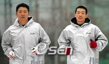 현대 우완 투수들인 정민태(36)와 조용준(27)이 시즌 말 복귀를 위한 막바지 점검을 갖고 있다. 작년 가을 오른 어깨 수술을 받고 재활중인 정민태는 19일 원당구장에서 열린 2군리그 SK와의 경기에 선발등판, 5이닝 4피안타 2볼넷 2실점(1자책)을 기록하며 승리 투수가 됐다. 최고 구속은 137km로 아직 정상 페이스를 찾지 못하고 있으나 재활 투구 초반 130km대 초반에 머물 때보다는 나아졌다. 역시 정민태와 함께 수술을 받고 재활 중인 구원투수 ‘조라이더’ 조용준도 3번째 투수로 나서 2이닝 1피안타 1탈삼진 무실점으로 호투하며 홀드를 기록했다. 조용준의 최고구속은 136km. 정민태와 조용준은 시즌 막판 복귀를 위해 페이스를 올리고 있다. 팀이 포스트시즌에 진출하면 1군 합류가 예상된다. 현대는 정민태와 조용준 등의 호투에 힘입어 6-4로 승리했다. 현대 조평호는 1회 투런, 8회 솔로 등 홈런 2방을 날리며 팀승리에 기여했다. 함평구장에서는 원정팀 한화가 KIA를 5-3으로 제압했다. 한화는 선발 신주영이 7⅔이닝 7피안타 2볼넷 3탈삼진 2실점으로 호투하며 승리를 따냈다. 한화 베테랑 구원투수 오봉옥은 1이닝 2피안타 1실점을 기록했다. 최민준이 홈런 한 개 포함 3타수 2안타 2타점으로 공격을 이끌었다. KIA는 선발 손영민이 5⅔이닝 6피안타 1볼넷 2탈삼진 5실점(3자책)으로 패전을 기록했고 공격에서는 권희석이 2회 솔로 홈런을 날렸다. sun@osen.co.kr 정민태(왼쪽)-조용준.