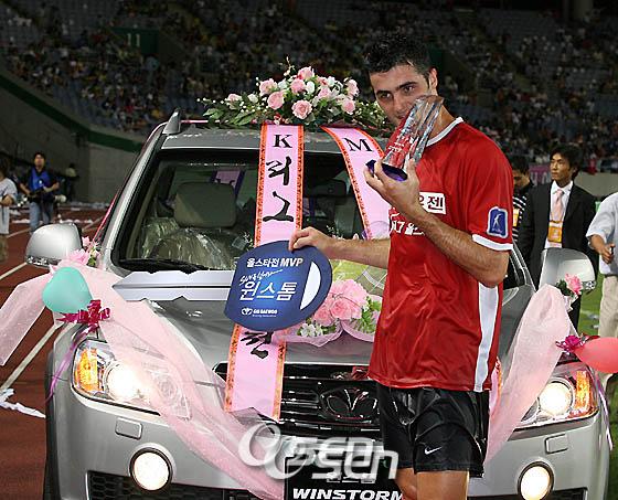 라돈치치(인천 유나이티드 FC)가 홈구장에서 열린 올스타전에서 '최고 왕별'로 떠올랐다. 중부팀 소속의 라돈치치는 20일 인천 문학월드컵경기장에서 열린 삼성 하우젠 2006 K리그 올스타전에서 혼자서 5골을 터뜨리는 수훈에 힘입어 남부팀을 10-6으로 대파했다. 이로써 라돈치치는 지난 2002년 올스타전에서 4골을 터뜨리며 최초로 용병 최우수선수(MVP)가 된 샤샤에 이어 사상 두 번째로 용병 MVP가 되는 영예를 누렸다. 남부팀은 전반 3분 최성국(울산 현대), 전반 8분 안영학(부산)의 연속골로 2-0으로 앞서나갔지만 중부팀도 이에 질세라 전반 19분 김은중(FC 서울)의 크로스에 이은 이관우(수원)의 헤딩골과 함께 전반 32분 백지훈(서울), 이관우(수원) 등이 골문에서 혼전을 벌이던 중 흘러나온 볼을 박주영(서울)이 골문 안으로 밀어넣으며 2-2 동점을 만들었다. 이어 전반 33분 김영광(전남)을 제친 박주영의 패스를 받은 김은중(서울)의 골로 중부팀이 3-2로 앞서갔으나 남부팀 역시 전반 37분 이천수의 호쾌한 슈팅으로 다시 동점을 만들어 3-3으로 전반을 끝냈다. 후반 4분만에 최성국의 두번째 골로 남부팀이 4-3으로 다시 앞서갔지만 이후부터 라돈치치의 '원맨쇼'가 이어지며 중부팀의 완승 분위기로 흘러갔다. 후반 6분 페널티 지역 정면으로 쇄도한 라돈치치가 박주영의 어시스트를 받아 동점골을 터뜨렸고 후반 19분 보띠(전북 현대)의 득점포에 이어 라돈치치가 후반 23분 조준호(제주 유나이티드 FC)와 1대 1로 맞선 끝에 중부팀의 여섯번째 골을 터뜨렸다. 후반 25분 최성국의 해트트릭이 나왔지만 후반 34분 박주영의 골에 이어 라돈치치가 후반 39분과 후반 41분, 후반 43분 잇달아 골을 성공시키며 승리를 결정지었다. 후반 44분 최성국이 다시 득점포를 쏘아올리며 4골째를 터뜨렸지만 남부팀이 패하는 바람에 MVP의 영예를 누리지 못했다. 한편 이날 경기에서는 무려 16골이 터져나와 지난 1999년 한경기 최다득점이었던 10골을 무려 6골이나 넘기며 신기록을 세웠고 중부팀이 기록한 10골 역시 지난 1999년에 중부팀이 세웠던 기존 한팀 최다 득점(7골)을 넘어섰다. 또 역대 올스타전에서 단 한번밖에 없었던 해트트릭도 이날 경기에서는 라돈치치와 최성국 등 2명의 선수가 기록했다. 이밖에 중부팀의 지휘봉을 맡은 차범근(수원 삼성) 감독은 올스타전 감독을 맡은 이후 세번째만에 첫 승리의 기쁨을 만끽한 반면 남부팀의 허정무(전남) 감독은 올스타전 세번째 만에 첫 패배를 기록했다. ■ 20일 전적 △ 올스타전 (인천) 중부 10 (3-3 7-3) 6 남부 ▲ 득점 = 이관우(전19,도움 김은중) 박주영 2골(전32-후34,도움 김치우) 김은중(전33,도움 박주영) 라돈치치 5골(후6,도움 박주영-후23,도움 보띠-후39,도움 보띠-후41,도움 배기종-후43) 보띠(후19·이상 중부) 최성국 4골(전3,도움 안영학-후4,도움 김진용-후25,도움 이천수-후44,도움 뽀뽀) 안영학(전8,도움 최성국) 이천수(전37,도움 정경호·이상 남부) tankpark@osen.co.kr