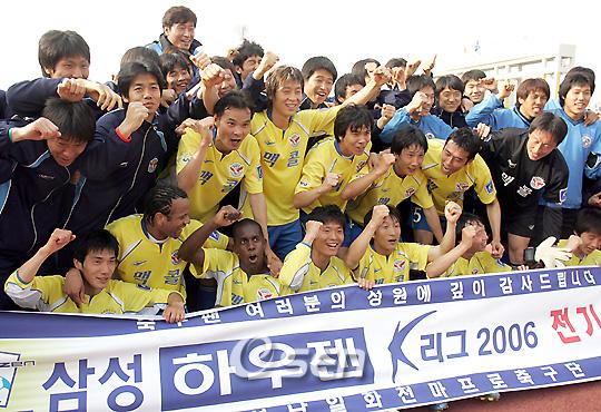 '진짜 싸움은 이제부터다'. 독일 월드컵과 컵대회 일정으로 3달간 쉬었던 K리그 정규리그가 재개된다. 23일 개막하는 후기리그는 초반부터 열기에 휩싸일 전망이다. K리그 14개팀의 목표는 오로지 정규리그 우승. 그러기 위해선 먼저 전후기 1위 내지는 통합성적에서 차순위 2개팀 안에 들어야 한다. '1차 목표'를 달성한 4개팀은 플레이오프와 챔피언결정전을 통해 대망의 2006 시즌 우승컵을 가슴에 품게 된다. 전기리그를 1위로 통과한 성남 일화를 제외한 13개팀은 첫 경기부터 '죽기 살기'로 맞붙을 것으로 예상된다. 전기리그에서 1위를 차지한 성남이 '후기리그도 놓치지 않겠다'고 으름장을 놓은 가운데 후기리그는 컵대회 우승팀 FC 서울이 '태풍의 눈'으로 자리잡았다. 전기리그에서 성남(10승2무1패.득 21.실 9)이 독주를 벌였다면 컵대회에서는 서울(8승3무2패.득 20.실 11)이 주인공이 됐다. 전기리그에서 4위를 기록한 서울은 현 페이스만 유지한다면 플레이오프에 진출할 수 있는 가능성이 높다. 서울은 여름을 나면서 백지훈을 수원으로 떠나보냈지만 베테랑 이을용을 영입하면서 무게감을 한층 높였다. 성남의 전기리그 우승에 힘을 보탠 용병 두두도 가세, 공격진은 박주영, 김은중, 정조국까지 '막강 체제'를 갖췄다. 통합순위만을 놓고 본다면 포항 스틸러스(전기 2위)와 대전 시티즌(전기 3위)은 서울에 비해 각각 승점에서 +6과 +3에서 시작해 플레이오프 진출에 유리하다. 전기리그에서 차곡차곡 승점을 쌓아온 결과다. 또한 전기리그에서 순위는 밀렸지만 승점을 놓고보면 4위 서울부터 13위 경남 FC까지 치열한 각축전을 피할 수 없다. 서울과 경남의 승점차는 3에 불과하다. 특히 전남 드래곤즈, 부산 아이파크, 전북 현대, 수원 삼성은 서울과 승점에서 동률을 이뤘지만 득실차에서 뒤졌을 뿐이다. 이들 모두 플레이오프 진출이 가능하다. 특히 수원은 여름 동안 40억 원이 넘는 투자로 이관우, 백지훈을 데려와 중원에서 김남일과 호흡을 맞추게 했다. 신인왕 출신의 문민귀와 김태진도 한 배를 탔다. 또한 우루과이 출신의 장신 공격수 올리베라와 브라질 출신의 실바를 영입해 공격진의 파워를 업그레이드시켜 '우승 전선'을 밝게 비췄다. '디펜딩 챔피언' 울산 현대도 무시할 수 없다. 당초 예상과 달리 부진을 거듭했던 울산은 A3 챔피언스컵에서 우승을 차지하면서 분위기가 급반등, 챔피언의 위용을 보여주겠다는 계획이다. 지난 해 준우승팀 인천 유나이티드는 컵대회에서 '젊은 피'들의 시험가동을 마치면서 드라간과 바조 등 2명의 용병을 영입, 후기리그에서 반전을 꿈꾸고 있다. 한편 K리그 팀순위결정은 승점→득실차→다득점→다승→승자승→추첨 순이며 개인기록순위(득점 및 도움)는 득점(도움)수→출장횟수→출장시간→추첨 순으로 결정된다. iam905@osen.co.kr 전기리그서 우승한 뒤 환호하는 성남 선수들.