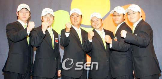 삼화저축은행(구단주 신삼길)과 동아회원권(회장 김영일)이 국내 최초로 골프단간 매치플레이를 벌인다. 두 골프단은 오는 25일 경북 영덕의 오션뷰골프장(파72)에서 제1회 삼화저축은행-동아회원권 클럽 매치플레이를 개최한다고 22일 발표했다. 총 상금 3000만 원이 걸려 있는 이번 대회는 각 팀에서 6명씩 출전, 1대1 매치플레이를 통해 우승팀이 2000만 원, 준우승팀이 1000만 원을 나눠갖는다. 이번 대회서는 동아회원권의 노장 최상호(51)와 삼화저축은행의 간판 박도규(36)의 맞대결이 가장 관심을 모으고 있다. 박재영 삼화저축은행 단장은 "이번 대회가 골프단 창단에 촉매가 됐으면 한다"면서 "내년에는 규모를 확대해 한국 최고의 매치플레이 대회로 발전시킬 생각" 이라고 말했다. 구단별 출전 선수 순서는 다음과 같다. ▲삼화저축은행=박도규(36) 최호성(33) 강경남(23) 권명호(22) 김상기(22) 정성한(25) ▲동아회원권=최상호(51) 권영석(36) 강지만(30) 정재훈(29) 이진원(28) 김태규(24) sun@osen.co.kr 지난 1월 창단식서 함께 포즈를 취하고 있는 삼화저축은행의 멤버들.