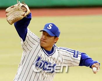 삼성이 롯데를 꺾고 선두 순항을 계속했다. 전병호는 9승째를 따내 생애 두 번째 10승 고지를 앞뒀다. 오승환은 5연속 세이브를 따냈다. 삼성은 22일 롯데와의 대구경기에서 박진만의 3점홈런과 전병호 권오준 오승환의 환상계투를 앞세워 4-2로 승리, 2연패에서 벗어났다. 시즌 58승째(34패3무)를 거두었다. 롯데는 51패째(36승2무). 승부는 1회에 홈런 두 방으로 결정났다. 삼성은 1회말 선두타자 박한이의 중월 솔로홈런으로 포문을 열었다. 이어 조동찬의 내야안타와 양준혁의 볼넷, 김한수의 희생번트로 1사 2,3루 찬스를 잡고 박진만이 좌월 3점포를 터트려 단숨에 4-0으로 점수차를 벌렸다. 롯데는 3회초 이원석과 황성룡의 연속안타, 호세의 볼넷으로 1사만루 기회를 잡았다. 그러나 이대호의 우익수 희생플라이와 존 갈의 좌전 적시타로 두 점을 뽑는 데 그쳤다. 타격 1위 이대호는 5회초 2사 후 홈런성 타구를 날렸으나 우중간 철책을 맞고 나왔고 2루까지 뛰다 횡사하는 등 불운했다. 이후 삼성 전병호는 5⅓이닝 7안타 2실점으로 시즌 9승째(4패)를 챙겼다. 지난 97년 10승 이후 8년만에 두자릿수 승리를 앞두게 됐다. 선동렬 삼성 감독은 6회초 1사후 필승계투조 권오준(2이닝)과 오승환(1⅔이닝)을 차례로 올려 롯데 타선을 무실점으로 막았다. 오승환은 세이브를 추가. 시즌 36세이브째를 기록했다. sunny@osen.co.kr