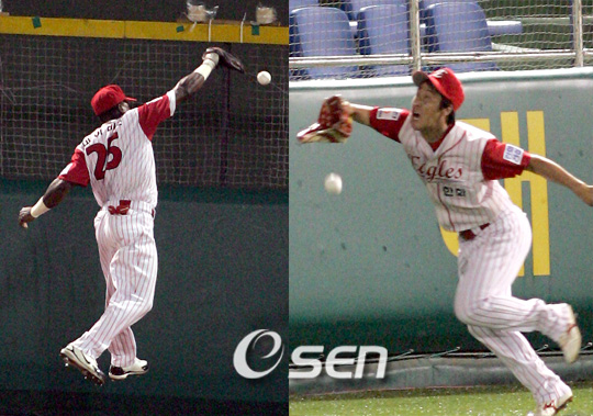 프로야구 첫 개인 통산 200승에 단 1승을 남겨두고 3차례의 쓴 맛을 본 뒤 22일 대전 구장서 현대를 상대로 4수에 나섰던 송진우가 또다시 대기록 달성에 실패했다. 송진우는 6회 송지만의의 타구가 중견수 데이비스의 글러브에 맞고 튄(왼쪽) 데 이어 7회 좌익수 김수연이 이숭용의 파울 타구를 잡지 못한 뒤 모두 실점으로 이어지는 등 승운이 따르지 않았다./대전=손용호 기자spjj@osen.co.kr