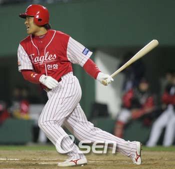 한화가 연장 혈투 끝에 현대전 4연패에서 벗어났다. 한화는 24일 대전구장에서 열린 현대와의 경기에서 연장 11회말 선두 타자 연경흠의 2루타와 신경현의 끝내기 안타에 힘입어 3-2로 힘겹게 승리했다. 한화는 이로써 현대전 최근 4연승에서 탈출했고 현대는 최근 3연승을 마감했다. 3위 한화는 2위 현대와의 승차를 다시 반게임차로 좁혔다. 투수전으로 팽팽히 맞선 이날 경기는 결국 연장 11회말에 한화 공격서 갈라졌다. 2-2로 맞선 11회말 한화는 선두타자 연경흠이 현대 구원투수 송신영으로부터 좌중간 2루타를 뽑아내 출루하면서 득점의 발판을 마련했다. 다음 타자 한상훈이 좌익수 플라이 아웃으로 물러났으나 후속 신경현이 적시타를 터트려 긴 승부에 마침표를 찍었다. 한화 마무리 투수 구대성은 3⅔이닝을 던지며 1피안타 2볼넷 2탈삼진 무실점으로 현대 공격을 틀어막고 승리 투수가 됐다. 시즌 2승째. 한화 김태균은 0-1로 뒤진 2회말 현대 좌완 선발 장원삼으로부터 동점 솔로 홈런을 터트리며 시즌 10호 홈런을 기록했다. 현대 선발 장원삼은 7⅓이닝 7피안타 2볼넷 6탈삼진 2실점으로 호투했으나 시즌 10승 달성에 아깝게 실패했다. sun@osen.co.kr 신경현.