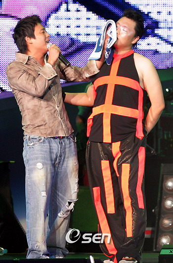 싸이가 절친한 동료가수 이재훈의 솔로 데뷔에 힘을 실어주기 위해 무료로 곡을 선물하기로 약속했다. 8월 19, 20일 서울 연세대학교 노천극장에서 열린 싸이의 ‘썸머스탠드’ 콘서트에는 이틀간 쿨의 이재훈이 게스트로 무대에 올라 듀엣으로 노래를 선사해 팬들의 큰 호응을 얻었다. 당시 싸이는 “오는 11월에 재훈이 형의 솔로 앨범이 나온다”며 “이틀간 무보수로 내 콘서트에 와 노래를 불러 준 대가로 내가 형 솔로 앨범에 무료로 한 곡을 주기로 했다”고 깜짝 고백한 바 있다. 이와 관련해 싸이 소속사의 한 관계자는 “싸이의 콘서트에 와준 대가로 곡을 준다기보다는 워낙 둘이 친하기 때문에 흔쾌히 곡을 선물하기로 약속한 것”이라며 “이재훈 씨는 매번 싸이 콘서트 때마다 게스트로 참석해 무대를 빛내주었다. 둘이 너무 친하기 때문에 무슨 대가를 바라고 오는 것은 아니다”고 답했다. 이 관계자는 또 "싸이는 2004년에도 쿨의 베스트앨범에 수록된 ‘벌써 이렇게’를 무료로 선물한 적이 있다"고 언급했다. 4집 앨범 ‘싸집’으로 돌아온 싸이는 밀려드는 CF요청과 방송스케줄로 눈코 뜰 새 없이 바쁜 나날을 보내고 있으며 곧 이재훈에게 선물한 곡 작업에 들어갈 예정이다. hellow0827@osen.co.kr 콘서트에서 이재훈이 싸이의 땀을 닦아주고 있다.