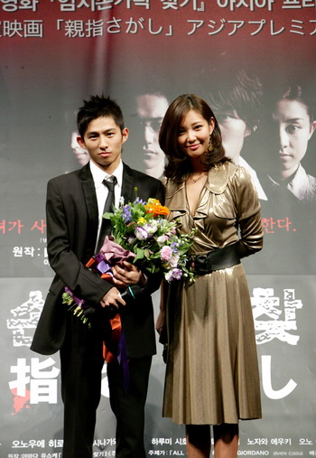 연기자 김규리가 오랜만에 공식석상에 모습을 드러냈다. 8월 28일 오후 6시 서울 압구정 CGV에서 열린 일본 공포영화 ‘엄지손가락 찾기(오야유비사가시)’의 아시아 프리미어 시사회에는 일본 인기 그룹 V6의 멤버이자 이번 작품의 주인공인 미야케 켄이 참석해 간단한 무대인사와 포토타임을 가졌다. 시사회에는 국내 대표 공포영화 ‘여고괴담’의 주인공이었던 김규리가 참석해 자리를 빛냈는데 미야케 켄과 김규리의 만남은 V6의 소속사인 에이벡스 측이 요청해 이루어진 것으로 알려졌다. 평소 V6의 열렬한 팬이었다고 밝힌 김규리는 “미야케 켄이 어떻게 연기할까 참 궁금했는데 직접 영화를 보니 내면 연기가 훌륭하신 것 같다”며 “나중에 기회가 된다면 같이 영화를 찍고 싶다”는 바람을 드러냈다. 김규리의 깜짝 러브콜에 미야케 켄은 “나도 김규리 씨와 같이 연기해보고 싶다”며 “너무 아름다우셔서 빨려들 것 같다”고 말해 관객들을 열광케 했다. 이번 시사회에는 250여명의 국내 팬들이 초청됐으며 팬들은 미야케 켄의 동작 하나하나에 관심을 기울이며 열정적인 호응을 보내줘 눈길을 끌었다. 미야케 켄은 일본 호러 소설을 영화화한 ‘엄지손가락 찾기’에서 어두운 과거를 가진 주인공 타케시 역으로 출연했다. hellow0827@osen.co.kr 영화 '엄지손가락 찾기' 프리미어 시사회에 참석한 미야케 켄과 김규리/SM제공.