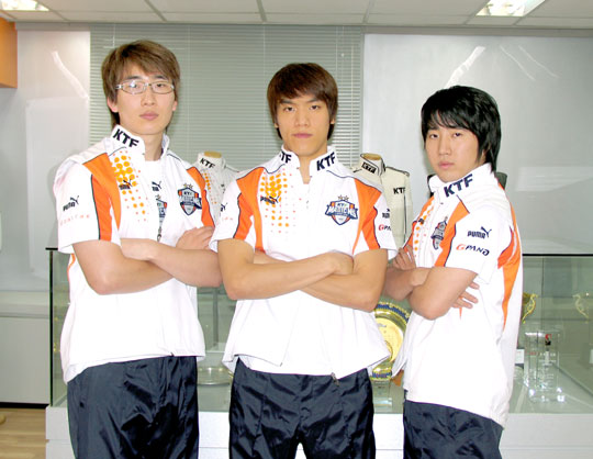 '폭풍' 홍진호, '몽상가' 강민, '영웅' 박정석, '목동' 조용호 가 활동하는 'e스포츠계의 레알마드리드' KTF 매직엔스의 유니폼이 후기 프로리그부터 새로 바뀐다. KTF는 1일 서울 서초동 매직캠프에서 새로운 유니폼을 공개했다. 이날 공개회에는 박정석 강민 홍진호 변길섭 이병민 김윤환 김세현 등 팀의 주축선수들이 모델로 나서 새 유니폼을 선보였다. 새로운 유니폼은 KTF의 디자인 컨셉인 '오렌지컬러'와 '바이탈 패턴'을 가미해 시각적으로 화사하고 진취적인 느낌을 강조해 선수들의 경기력 향상을 위해 활동성과 통기성을 더욱 향상시킨 점이 특징이다. 주장 박정석은 "금번 유니폼은 KTF의 '오렌지 컬러와 패턴'이 반영되어 소속감을 더욱 느껴지게 한다"면서 "앞으로 후기리그에는 단순히 이기는 승부보다는 팬들에게 감동을 경기를 하는 데 주력하겠다"며 새로운 유니폼에 만족해했다. scrapper@osen.co.kr