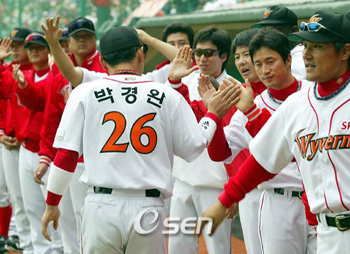 SK 와이번스가 4위 싸움의 최대 승부처인 기아 타이거즈와의 홈 3연전 첫 경기를 3시간 30분 총력전 끝에 잡았다. SK는 1일 기아와의 문학 홈경기에서 박경완-정경배의 홈런포와 6회말 1사 1,3루에서 나온 정근우의 유격수 땅볼로 결승점을 뽑았다. SK는 마운드에서 선발 윤길현을 시작으로 김경태-정대현-카브레라를 릴레이 투입, 4-3 승리를 지켜냈다. 기아는 3회 김원섭의 희생플라이와 5회 SK 유격수 이대수-우익수 이진영의 어설픈 수비에 편승해 3-3 동점을 만들어냈다. 그러나 믿었던 용병 우완 그레이싱어가 박경완(2회 솔로), 정경배(4회 투런)을 맞는 등 5⅔이닝 4실점, 한 번도 주도권을 잡지 못했다. 여기다 9회 2사 2루에서 나온 대타 손지환의 좌전안타 때 2루주자 이종범이 홈에서 아웃돼 끝내 반전의 계기를 잡지 못했다. SK는 이날 승리로 4위 기아에 0.5게임차로 따라붙어 4강 레이스를 안갯속으로 몰아 넣었다. sgoi@osen.co.kr