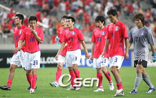 한국 축구대표팀이 마지막 3초도 버티지 못하고 종료직전 통한의 동점골을 허용하며 다 잡았던 승리를 놓쳤다. 핌 베어벡 감독이 이끄는 한국 축구대표팀은 2일 서울 상암 월드컵경기장에서 열린 2007 아시안컵 B조 예선 3차전에서 설기현의 헤딩골로 승리를 챙기는 듯 했으나 종료 직전 바히드 하셰미안에게 동점골을 허용하며 1-1로 비기고 말았다. 아시안컵에서 시리아와 대만을 모두 꺾고 2연승을 달렸던 한국은 이란까지 잡아 편하게 아시안컵 본선행을 확정지을 수 있는 기회를 놓쳤고 이란은 가까스로 승점 1을 챙기며 조 2위를 지켰다. 통한의 동점골을 허용한 것도 아쉬웠지만 한국의 공격력은 상암벌을 가득 메운 6만3천여 관중들을 만족시키고 매료시키기엔 공격은 답답하기 그지 없었다. 박지성-조재진-설기현 '스리톱'을 가동했지만 박지성이 이란 수비의 집중 견제를 받는 바람에 이영표와 박지성으로 이어지는 왼쪽은 전혀 공격으로 이어지지 못했다. 왼쪽이 막히다보니 한국은 중앙 돌파와 오른쪽을 이용한 공격으로 의존할 수 밖에 없었다. 전반 내내 지루한 경기 운영 속에 전반 18분 자바드 네쿠남의 볼 컨트롤 미스를 틈타 박지성까지 공격이 연결됐지만 슈팅을 날리지 못한 한국은 전반 20분 설기현의 돌파, 전반 21분 이영표의 크로스로 시동을 걸어봤지만 허사였다 . 오히려 전반 26분에는 송종국의 볼 컨트롤 실수로 알리 카리미에게 슈팅을 허용했지만 골문 바깥으로 벗어나 가슴을 쓸어내린 한국은 전반 31분 설기현, 전반 34분 박지성의 크로스가 나왔지만 이렇다할 기회를 맞지 못했다. 전반 43분 김두현의 슈팅으로 공격의 빈도를 높여간 한국은 전반 인저리 타임 이란 선수의 파울로 얻은 프리킥 기회를 맞았고 세트 플레이 한방으로 선제골이 터져 나왔다. 김두현이 오른쪽 터치라인 근방에서 쏘아올린 프리킥이 페널티 지역 한가운데로 향했고 설기현이 함께 뜬 마흐무드 페크리보다 앞서 헤딩슛으로 연결, 굳게 닫혀있던 이란의 골문을 열었다. 설기현의 골을 어시스트한 김두현은 시리아전, 대만전 득점에 이어 3경기 연속 공격 포인트를 기록했다. 후반 들어 박지성과 설기현의 잦은 좌우 위치이동으로 이란의 수비를 교란시킨 한국은 후반 23분 조재진의 아크 정면 슈팅, 후반 26분 이호의 오버헤드킥과 박지성의 발리슛이 잇따라 나왔지만 모두 골키퍼에 잡히거나 골문을 벗어났고 후반 33분에는 이란 선수의 볼처리 미숙으로 맞은 기회를 조재진이 아크 왼쪽에서 강슈팅을 날렸지만 역시 골키퍼에게 잡히고 말았다. 후반 37분 하셰미안의 크로스에 이은 카리미의 슈팅이 헛발질로 끝나는가 하면 이란의 공격이 무뎌져 한국의 승리가 점쳐졌지만 막판 실수가 동점골로 연결됐다. 후반 인저리 타임 김상식과 골키퍼 김영광의 호흡이 맞지 않는 순간 하셰미안이 김영광이 골문을 비운 틈을 타 가볍게 슈팅을 날렸고 공은 김영광 머리 위로 날아가 한국의 골망 오른쪽으로 꽂혔다. 이란의 동점골이 터져나온 뒤 한국이 킥오프를 하자마자 주심은 그대로 종료 휘슬을 불어 더더욱 동점골이 뼈아프게 느껴졌다. ■ 2일 전적 (아시안컵 예선 3차전) △ 상암 한국 1 (1-0 0-1) 1 이란 ▲ 득점 = 설기현(전45, 도움 김두현·한국) 바히드 하셰미안(후45·이란) ■ 한국 축구대표팀 출전명단 ▲ GK = 김영광 ▲ DF = 이영표 김동진 김상식 송종국(후35 조원희) ▲ MF = 김남일 김두현(후34 이을용) 이호 ▲ FW = 박지성 조재진 설기현 ■ 아시안컵 B조 예선 순위 (2일 현재) ① 한국 2승1무 (승점 7) 득 6, 실 2 / +4 ② 이란 1승2무 (승점 5) 득 6, 실 2 / +4 ③ 시리아 1승1무1패 (승점 4) 득 6, 실 3 / +3 ④ 대만 3패 (승점 0) 득 0, 실 11 / -11 tankpark@osen.co.kr 한국 선수들이 아쉬운 표정으로 붉은악마게에 인사를 하러 가고 있댜./상암=손용호 기자spjj@osen.co.kr