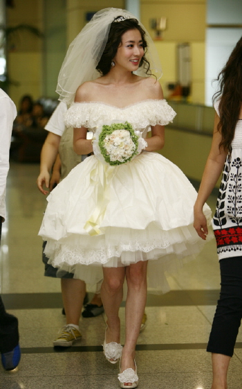 최정원과 고주원이 ‘소문난 칠공주’에서 웨딩마치를 울리는 가운데 웨딩드레스를 입은 최정원의 모습이 공개됐다. 최정원은 9월 4일 오후 서울 대방동 공군회관에서 진행된 KBS 2TV 주말극 ‘소문난 칠공주’ 웨딩 촬영에서 파격적인 웨딩드레스로 눈길을 끌었다. 웨딩드레스의 일반적인 상식을 깨고 무릎 위 10cm의 길이로 시선을 모았다. 길이에 있어서 뿐만 아니라 어깨선이 훤히 드러나는 상의에 풍성한 레이스로 장식된 스커트가 나미칠과 꼭 어울리는 평가를 받았다. 이날 최정원이 입은 웨딩드레스는 웨딩더랩의 김지숙 실장이 디자인한 것으로 뽀얀 피부와 늘씬한 각선미가 드러나 "최정원과 안성맞춤"이라며 이날 현장에 모인 사람들로부터 극찬을 받았다. 한편, 최정원과 고주원의 웨딩 촬영을 통해 공개된 나미칠 표 웨딩드레스는 10일 48회분을 통해 방송된다. orialdo@osen.co.kr