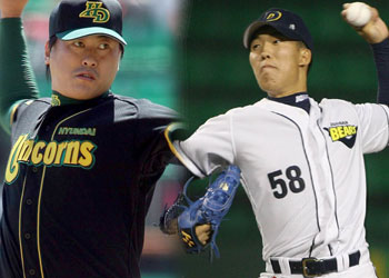 '방어율 제로 투수끼리 맞붙는다'. 8일 잠실 구장에서 벌어질 현대-두산전은 양 팀 선발투수들이 상대 전적에서 나란히 방어율 0을 마크하고 있어 결과가 관심을 끈다. 올 시즌 현대의 명실상부한 에이스로 떠오른 우완 전준호와 두산의 전천후 좌완 금민철의 대결이다. 전준호는 올해 25경기서 12승 2패 1세이브에 방어율 3.22를 기록하는 동안 두산전에는 이상하게도 지난달 17일 선발 등판할 때까지 단 한 차례도 등판 기회를 잡지 못했으나 이날 완벽에 가까운 투구로 상대 타선을 압도했다. 7이닝 동안 108개를 던지며 3피안타 4사사구 5탈삼진을 기록하며 두산을 무실점으로 눌렀다. 올 시즌 33경기서 3승 1패 방어율 4.96의 평범한 성적에 머물고 있는 금민철 또한 현대에는 강했다. 4경기에 모두 중간 투수로 나와 1구원승을 챙기며 방어율0으로 막아냈다. 두산 벤치로서는 금민철이 현대전에서 잘 던진 점을 감안, 4위 KIA 추격에 제동이 걸린 팀에 '윤활유' 역할을 기대하면서 선발로 기용한 것으로 보인다. 두산은 이번 주 들어 SK를 6위로 밀어내며 5위로 올라서는 데는 성공했으나 지난 6일 LG와의 더블헤더 2차전과 7일 현대전서 패해 2연승 중인 KIA와의 승차가 다시 1.5게임으로 벌어져 매 게임에 승부를 걸어야 하는 처지다. 더욱이 두산은 7일 현대전서 믿었던 셋업맨 박명환이 무너진 충격도 있다. 박명환은 3-1로 앞서던 6회 등판해 7회 들어 제구력 난조를 보이며 2안타 3볼넷으로 5실점, 단번에 역전을 내줬고 결국 두산의 패배로 이어졌다. 상대 전적서 함께 방어율 0을 기록하고 있는 양 팀 선발투수들을 타자들이 어떻게 공략할지도 관심사다. 현재 양 팀은 최근 5경기 타율에서 모두 3할대를 기록, 방망이 감이 괜찮은 편이기 때문이다. 5경기 타율이 3할 1푼 4리인 현대는 중심 타선인 이택근(.412) 서튼(.421) 이숭용(.400) 정성훈(.471)이 4할대를 기록하며 고공행진을 벌이는 중이고 톱타자 송지만도 3할 6푼 8리로 호조다. 두산 또한 만만치 않아 시즌 팀 타율(.263)은 현대(.271)에 이어 2위이나 5경기 타율은 3할 1푼 8리로 현에 오히려 앞서 있다. 장원진(.538)과 고영민(.474)의 방망이가 불을 뿜고 있고 안경현(.368) 강동우(.333) 손시헌(.316) 홍성흔(.313)도 좋은 감을 유지하고 있다. 다만 찬스에 강한 홍성흔이 무릎 통증으로 완전한 컨디션이 아닌 것이 변수이긴 하다. 또 이날 경기는 선발 투수들이 얼마나 버텨주느냐도 중요한 요소가 될 전망이다. 현대는 전날 선발투수 손승락이 4회에 손톱이 깨지며 강판, 황두성 이현승을 투입한 뒤 역전에 성공한 다음에는 송신영 박준수도 마운드에 올려 중간계투진의 투구수가 많았다. 두산 또한 중간계투진의 핵심인 박명환이 역전패의 충격을 당한 데다 1⅔이닝동안 41개를 던져 8일 등판은 힘들 것으로 보여 중반 이후 불펜 운용이 승부에 영향을 미칠 전망이다. 전준호-금민철.
