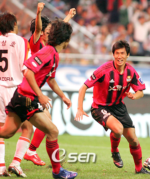 지난 6일 대만과의 2007 아시안컵 B조 예선 4차전에서 해트트릭을 기록한 '패트리어트' 정조국이 결승골을 터뜨리며 소속팀 FC 서울의 승리를 이끌었다. 정조국은 9일 서울 상암 월드컵 경기장에서 열린 삼성 하우젠 K리그 2006 후기리그 4차전에서 후반 17분 히칼도의 도움을 받아 헤딩 결승골을 터뜨리며 제주 유나이티드 FC에 1-0 승리를 거두는 데 결정적인 역할을 했다. 이날 정조국은 후반 11분 김은중 대신 그라운드에 나와 6분만에 히칼도의 코너킥을 골지역 정면에서 돌고래처럼 솟아오른 뒤 골문 안으로 힘차게 밀어넣었다. 한편 서울과 함께 승점 차 없이 골득실에서 밀려 2, 3위를 기록하고 있던 수원과 울산은 모두 1-1로 비기면서 순위는 변함없이 승점차만 서울에 2점 뒤지게 됐다. 특히 수원은 대전과의 홈경기에서 올리베라가 문민귀의 드로인을 받아 오른발 터닝슈팅, 선제골을 넣었지만 후반 37분 헙슨의 프리킥으로 동점을 내줘 또 다시 '대전 징크스'에 울고 말았다. 이날 경기로 수원은 0-2로 졌던 지난 2003년 5월 4일 이후 13경기째(8무 5패) 승리를 챙기지 못했다. 게다가 수원은 올리베라가 골대를 맞히고도 득점을 기록하는 행운을 맞았지만 후반 이정수의 헤딩슛과 조원희의 슈팅이 모두 골대를 맞고 나와 골대 징크스까지 겪었다. 또 울산은 부산과의 홈경기에서 지난 시즌 득점왕 마차도가 전반 10분 시즌 첫 골을 신고하며 선제골로 앞서가고도 후반 6분 뽀뽀에게 동점골을 내줘 1-1로 비겼다. 부산컵 청소년대회에서 4골을 터뜨리며 최우수선수(MVP)에 선정됐던 이상호는 전반 10분 마차도의 골을 어시스트했지만 팀이 비기는 바람에 빛이 바랬다. 포항은 전남과의 홈경기에서 전반 14분 산드로C에게 선제골을 내줬지만 전반 43분 박원재의 동점골과 후반 41분 황진성의 역전 결승골로 2-1로 승리하고 수원과 울산을 승점 1점차로 추격하며 4위에 올랐고 광주 상무도 1-0으로 승리, 전기리그 우승팀 성남 일화를 2연패로 몰아넣었다. 이밖에 경남 FC는 김진용의 연속 2골과 루시아노의 골 등 연속 3골을 몰아치며 장남석과 황연석이 후반 40분과 후반 45분 골을 터뜨리며 맹추격한 대구 FC를 3-2로 간신히 물리쳤고 인천 유나이티드 FC는 김영선의 자책골로 전북 현대에 1-0으로 승리했다. 이날 경기에서는 서울 수원 울산 포항 등 4곳에서 1만 명이 넘는 관중이 몰려 모처럼 성황을 이뤘다. 이날 7개 구장에서 열린 경기에 몰린 관중수는 8만 3721명으로 집계됐다. ■ 9일 전적 △ 서울 상암 (관중 13,221) 서울 1 (0-0 1-0) 0 제주 ▲ 득점 = 정조국 4호(후17, 도움 히칼도·서울) (·제주) △ 수원 (관중 28.763) 수원 1 (1-0 0-1) 1 대전 ▲ 득점 = 올리베라 2호(전40, 도움 문민귀·수원) 헙슨 1호(후37·대전) △ 울산 문수 (관중 11,076) 울산 1 (1-0 0-1) 1 부산 ▲ 득점 = 마차도 1호(전10, 도움 이상호·울산) 뽀뽀 8호(후6, 도움 이장관·부산) △ 포항 (관중 12,456) 포항 2 (1-1 1-0) 1 전남 ▲ 득점 = 박원재 2호(전43, 도움 프론티니) 황진성 1호(후41·이상 포항) 산드로C 2호(전14·전남) △ 창원 (관중 4,329) 경남 3 (0-0 3-2) 2 대구 ▲ 득점 = 김진용 4-5호(후5-후18) 루시아노 3호(후39, 도움 백영철·이상 경남) 장남석 5호(후40, 도움 이상일) 황연석 3호(후45, 도움, 최성환·이상 대구) △ 전주 (관중 7,042) 전북 0 (0-0 0-1) 1 인천 ▲ 득점 = 김영선 자책골(후8·전북) △ 광주 (관중 6,834) 광주 1 (0-0 1-0) 0 성남 ▲ 득점 = 구경현 1호(후33, 도움 정경호·광주) ■ 후기리그 순위 (9일 현재) ① 서울 3승 1무 (승점 10) 득 7, 실 3 / +4 ② 수원 2승 2무 (승점 8) 득 6, 실 4 / +2 ③ 울산 2승 2무 (승점 8) 득 3, 실 1 / +2 ④ 포항 2승 1무 1패 (승점 7) 득 6, 실 6 / 0 ⑤ 성남 2승 2패 (승점 6) 득 6, 실 2 / +4 ⑥ 제주 2승 2패 (승점 6) 득 5, 실 5 / 0 ⑦ 부산 1승 2무 1패 (승점 5) 득 6, 실 6 / 0 ⑧ 인천 1승 2무 1패 (승점 5) 득 4, 실 4 / 0 ⑨ 전남 1승 1무 2패 (승점 4) 득 4, 실 4 / 0 ⑩ 대구 1승 1무 2패 (승점 4) 득 6, 실 7 / -1 ⑪ 경남 1승 1무 2패 (승점 4) 득 7, 실 9 / -2 ⑫ 광주 1승 1무 2패 (승점 4) 득 2, 실 4 / -2 ⑬ 대전 1승 1무 2패 (승점 4) 득 6, 실 10 / -4 ⑭ 전북 1무 3패 (승점 1) 득 3, 실 6 / -3 ■ 전후기 통합 순위 (9일 현재) ① 성남 12승 2무 3패 (승점 38) 득 27, 실 11 / +16 ② 포항 8승 5무 4패 (승점 29) 득 27, 실 21 / +6 ③ 서울 6승 8무 3패 (승점 26) 득 20, 실 13 / +7 ④ 수원 5승 9무 3패 (승점 24) 득 17, 실 17 / 0 ⑤ 대전 5승 8무 4패 (승점 23) 득 19, 실 20 / -1 ⑥ 울산 5승 8무 4패 (승점 23) 득 12, 실 14 / -2 ⑦ 부산 5승 6무 6패 (승점 21) 득 30, 실 31 / -1 ⑧ 전남 3승 11무 3패 (승점 20) 득 18, 실 16 / +2 ⑨ 인천 3승 10무 4패 (승점 19) 득 15, 실 17 / -2 ⑩ 대구 3승 8무 6패 (승점 17) 득 20, 실 23 / -3 ⑪ 전북 3승 8무 6패 (승점 17) 득 16, 실 20 / -4 ⑫ 광주 3승 8무 6패 (승점 17) 득 12, 실 17 / -5 ⑬ 경남 4승 5무 8패 (승점 17) 득 17, 실 24 / -7 ⑭ 제주 3승 6무 8패 (승점 15) 득 13, 실 19 / -6 ※ 굵은 글씨는 포스트시즌 진출 확정 tankpark@osen.co.kr / iam905@osen.co.kr 정조국이 선제골을 터트리고 환호하며 동료들에게 달려가고 있다./상암=손용호 기자spjj@osen.co.kr