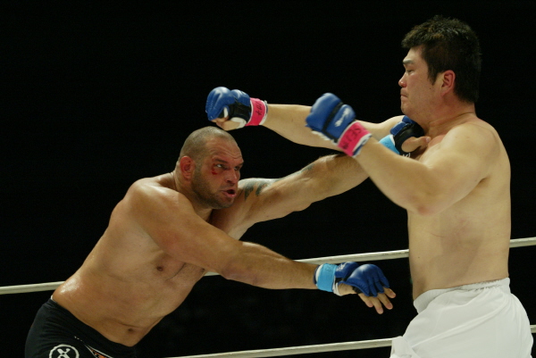'프라이드에서 정착하기엔 아직 멀었다'. 종합 격투기 프라이드 FC 진출 한 달만에 전격적으로 데뷔전을 치른 이태현(30, 팀 이지스)에 대해 많은 의견이 쏟아지고 있다. 결론부터 말하자면 기본기부터 다시 시작해야 한다는 것이다. 이태현은 지난 10일 일본 사이타마 슈퍼 어리나에서 열린 프라이드 FC 무차별급 월드 그랑프리 결승전을 통해 데뷔전을 치렀지만 브라질 출신 주짓수 선수 히카르두 모라이스에게 지고 말았다. 모라이스가 비록 프라이드 무대에서 2전 2패에 불과했던 선수였지만 이미 주짓수 등을 익히면서 격투기 무대에서 많은 경험을 쌓아왔다는 점을 감안한다면 이태현이 넘기에 쉬운 상대는 아닌 것만은 충분했다. 하지만 이날 보여준 이태현의 경기력은 기본기부터 다시 다듬어야 하는 등 많은 약점을 노출했다. 일단 체력적인 부분이다. 거구와의 힘 대결에서 이겨야 하는 씨름 선수라는 특성을 본다면 체력이 모자라다는 부분은 그리 큰 문제가 아닐 듯했으나 모라이스와의 경기에서 진 원인이 바로 체력이었다. 이태현이 너무나 얻어맞아 KO당한 것이 아니라 체력이 떨어질 대로 떨어지는 바람에 세컨드가 경기를 포기했을 정도다. 타격 기술은 아직까지 제대로 익히지도 못했다. 씨름 선수였기 때문에 테이크 다운까지 시키는 것은 좋았지만 유리한 상황에서 모라이스를 공략하지도 못했다. 모라이스의 주먹에는 눈을 감거나 고개를 돌리기까지 했다. 타격전에서 눈을 감을 경우 상대를 정확하게 가격할 수 없다는 점을 감안한다면 이태현은 벌써 주먹에 겁을 먹은 셈이다. 상대의 주먹에 겁을 먹은 선수는 절대로 성장할 수 없다. 여기에 스피드도 현저하게 떨어졌다. 하지만 펀치력과 테이크 다운 능력은 이태현의 성장 가능성을 엿보이게 하는 대목이다. 초반 주먹으로 모라이스의 안면에 상처를 냈고 만만치 않은 거구의 상대를 넘어뜨려 마운트 자세까지 취한 것은 한 달만에 링에 오른 선수치고는 매우 훌륭했다. 이태현은 한 달만에 데뷔전을 치르는 이유를 하루 빨리 링에 올라 보완할 부분을 알기 위해서라고 밝힌 바 있다. 하지만 기본기를 완전히 익히지 못한 상태에서 보완할 부분을 찾는다는 것은 애당초 무리였다. 프라이드라는 곳이 만만치 않다는 것을 느꼈다면 다시 처음부터 시작하는 자세가 중요하다. tankpark@osen.co.kr 이태현이 지난 10일 히카르두 모라이스와 데뷔전을 벌이고 있다./(c) Dream Stage Entertainment Inc. 제공