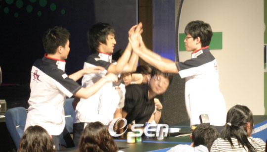 르까프가 흠잡을데 없는 경기력으로 개막전 승리 이후 2연승을 내달렸다. 11일 서울 용산 e스포츠 상설경기장에서 벌어진 '스카이 프로리그 2006' 후기리그 2주차 5경기 STX전서 이제동, 박지수의 패기 넘치는 플레이와 오영종의 깔끔한 마무리에 힘입어 3-1로 승리했다. 엔트리가 발표되고 관심의 초점은 2세트에 출전한 르까프 박지수에 쏠렸다. 2006년 전반기 드래프트에 선발되며 첫 출장하는 박지수가 STX의 에이스 진영수를 어떻게 상대할지 주목거리였다. 결과는 고무적이었다. 박지수는 섬맵과 다름없는 '알카노이드'에서 과감한 투 배럭 바이오닉 러시를 준비했다. 이에 비해 진영수는 배럭스 이후 팩토리를 늘리며 골리앗을 생산. 한 번의 정찰로 진영수를 찾으며 운도 따른 박지수는 중립건물을 파괴하며 진영수의 진형으로 병력을 보냈다. 진영수는 박지수의 1차 공격을 일꾼까지 동원해 방어한 후 막바로 드롭십을 이용해 역습을 했지만 이것은 악수로 작용했다. 골리앗을 4기 실은 드롭십은 힘 한 번 쓰지못하고 바이오닉 병력에 잡혀 버렸다. 승기를 잡은 박지수는 탱크를 추가, 기세좋게 진영수의 진형으로 공격에 들어갔다. 바이오닉 병력에 탱크가 가미된 박지수의 바카닉 병력은 진영수의 팩토리를 장악하며 승리를 따냈다. 박지수의 경기에 앞서 출전한 이제동 역시 전기리그 신인왕 다운 힘을 과시했다. STX의 저그 에이스인 김남기를 상대로 9드론 이후 저글링을 생산, 앞마당을 가져가 김남기를 4분 15초만에 꺽어 버리며 기세를 올렸다. 추격의 의지를 꺾지 않은 STX도 3세트 팀플전에서 김윤환-박종수 조가 구성훈-최가람 조를 꺽으며 2-1로 쫓기 시작했다. 그러나 르까프 4세트 출전 선수는 '사신' 오영종. 오영종은 전진 로보틱스로 앞마당을 가져간 김구한의 숨통을 완벽하게 조였다. 드라군으로 진형을 잡은 오영수는 배터리 2개를 추가, 리버 보호의 만반의 준비를 했다. 오영종은 리버가 추가되자 주저없이 김구한 캐논 라인을 깨며 조이기 시작했다. 리버가 한기 더 추가되자 위력은 배가 돼 김구한의 방어라인을 무력화시켰다. 일꾼까지 총 동원한 김구한은 오영종의 파괴력 넘치는 공격을 막아내지 못하고 항복을 선언했다. 한편 STX는 이날 패배로 소울 시절을 포함해 2005년 12월 21일 패해 이후 3연패를 이어갔다. ◆ 스카이 프로리그 2006 후기리그 2주차 5경기 ▲ STX 소울 1 - 3 르까프 오즈 1세트 김남기(저그, 7시) 이제동(저그, 1시) 승. 2세트 진영수(테란, 5시) 박지수(테란, 1시) 승. 3세트 김윤환(저, 5시)/박종수(프, 1시) 승 구성훈(테, 11시)/최가람(저, 7시). 4세트 김구한(프로토스, 3시) 오영종(프로토스, 7시) 승. scrapper@osen.co.kr