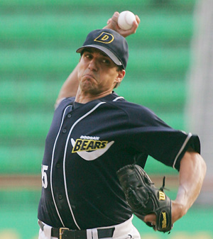 두산의 특급용병 다니엘 리오스(33)가 4강 진입에 사활을 건 롯데전에서 개인 최다 탈삼진으로 팀 완봉승을 이끌었다. 리오스는 12일 롯데와의 마산 원정경기에 시즌 30번째로 등판, 8이닝을 6피안타 2볼넷 무실점으로 틀어막았다. 특히 리오스는 롯데의 선발 라인업 전원을 한 차례 이상 돌려세우며 11삼진을 뽑아냈다. 선발타자 전원 탈삼진은 올 시즌 1호이며 통산 19번째 기록이다. 아울러 리오스의 1경기 최다 탈삼진이었다. 12일까지 유일하게 200이닝을 돌파한 투수인 리오스는 이로써 최근 3경기 등판에서 전승(전부 8이닝을 소화했다)을 따냄과 동시에 시즌 12승(12패)째를 달성했다. 두산 타선 역시 4회초 안경현-김동주의 연속 볼넷에 이어 5번 홍성흔이 롯데 좌완선발 장원준을 상대로 13구 대접전 끝에 비거리 130m 대형 중월 스리런홈런을 터뜨려 승기를 잡았다. 두산은 8회에도 좌전안타를 치고 출루한 1번타자 이종욱이 롯데 내야진의 연속 실책을 틈타 홈을 밟아 4점차로 달아났다. 이어 9회 2사 만루에서 안경현의 2타점 중전적시타로 6-0 굳히기 점수를 얻었다. 두산은 9회말 김덕윤을 올려 경기를 매조지했다. 이날 승리로 두산은 5할 승률(53승 53패 2무)에 복귀했다. 기아가 삼성에 8회까지 3-6으로 잡혔기에 두 팀의 승차는 0.5경기로 좁혀졌다. 리오스는 승리 직후 두산 홍보팀을 통해 "팀이 이길 수 있도록 던지는 게 내 임무다. 개인 최다 탈삼진은 던지다 보니 달성됐다. 최근 꾸준히 7~8이닝을 던지고 있는데 그만큼 팀에 도움이 될 터이니 기분좋다. 직구와 슬라이더 위주로 가져갔는데 특히 슬라이더 각이 좋았다"라고 소감을 밝혔다.