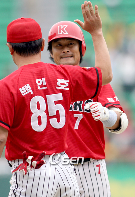 KIA가 투타 힘의 우위를 보이며 두산을 이틀 연속 눌렀다. 이로써 최대 접전인 4위 경쟁에서 두산과의 승차를 1.5경기 차로 벌렸다. KIA는 17일 두산과의 잠실 더블헤더 1차전에서 용병 에이스 그레이싱어의 7이닝 2피안타 2볼넷 무실점 위력투와 3안타 3타점을 몰아친 베테랑 이종범의 투타 활약이 어우러지며 5-0 영봉승을 따냈다. 결승 득점 포함 3차례 출루에 2도루를 성공시킨 톱타자 이용규와 볼넷 4개에 9회 쇄기 안타를 뽑아낸 3번 장성호의 공격 지원도 돋보였다. 승부는 5회초 KIA 공격에서 갈렸다. KIA 타선은 두산 우완 선발 김명제를 상대로 4회까지 매 이닝 선두타자 출루에, 3안타 4볼넷 1에러를 얻어내고도 단 1점도 뽑아내지 못했다. 4회까지 병살타만 2개 나왔고, 스퀴즈 실패로 3루주자가 홈 쇄도를 하다 횡사당하기도 했다. 그러나 5회 2사 만루에서 나온 이현곤의 땅볼 때 두산 유격수 손시헌의 한 템포 늦은 수비에 편승, 내야안타가 만들어지면서 선제점이자 결승점을 뽑았다. 물꼬를 튼 KIA 타선은 이어 6번 이종범이 좌측 담장을 그대로 맞히는 대형 2타점 2루타를 날려 분위기를 가져 왔다. 이종범은 7회 2사 2루에서도 1타점 우전 적시타를 쳐냈다. KIA는 9회에도 1점을 더 달아나 최근 3연승에 두산전 4연승을 성공시켰다. KIA 선발 그레이싱어는 에이스다운 위력투로 시즌 13승(12패)째를 거뒀다. 반면 두산 김명제는 승리없이 시즌 11패째를 당하게 됐다. sgoi@osen.co.kr 3타점째를 올리고 1루서 좋아하는 이종범./ 잠실=박영태 기자 ds3fan@osen.co.kr
