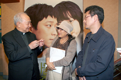 천주교 서울대교구장 정진석 추기경이 영화 ‘우리들의 행복한 시간’에 대해 극찬을 아끼지 않았다. 정 추기경은 9월 18일 서울 명동 중앙시네마에서 진행된 특별상영회에 참석했다. 이날 상영회는 영화사가 영화촬영 과정에서 물심양면의 지원을 해줬을 뿐만 아니라 최초로 명동성당 촬영을 허가해 준 천주교에 감사의 뜻으로 마련한 행사였다. 정 추기경은 천주교 관계자들과 함께 참석해 영화를 관람했다. 영화 관람 후 정 추기경은 “많은 관객들이 눈물을 흘릴 만큼 감동적이었다. 특히 강동원이 ‘누나!’하고 외치는 대사에는 영화의 전체 메시지가 잘 담겨 있다”고 소감을 밝혔다. 또 정 추기경은 극 중 윤수(강동원 분)를 용서하는 박할머니(김지영 분)의 모습을 인상적으로 꼽으며 “죽이고 싶어 할 만큼 미워하는 감정에서 한 순간에 용서라는 감정까지 갈 수는 없다. 처음엔 자신의 속마음을 드러내 보이다가 용서하려고 노력하는 모습으로 변하는 것이 바로 인간이지 않은가. 용서란 바로 이런 것이다”며 영화 속 용서와 화해, 그리고 인간애에 깊은 공감을 나타냈다. 마지막으로 정 추기경은 “‘우행시’는 좋은 의미를 설득력있게 전달하고 있는 영화이며, 이를 감동과 눈물로써 많은 사람들과 소통하게 하는 영화이기도 하다”고 평가했다. 강동원 이나영이 주연을 맡은 ‘우행시’는 지난 9월 14일 개봉해 인기리에 상영중이다. pharos@osen.co.kr 9월 18일 영화 ‘우리들의 행복한 시간’ 특별상영회에 참석한 정진석 추기경이 송해성 감독과 중견연기자 김지영을 만나 담소를 나누고 있다/프라임 엔터테인먼트 제공.