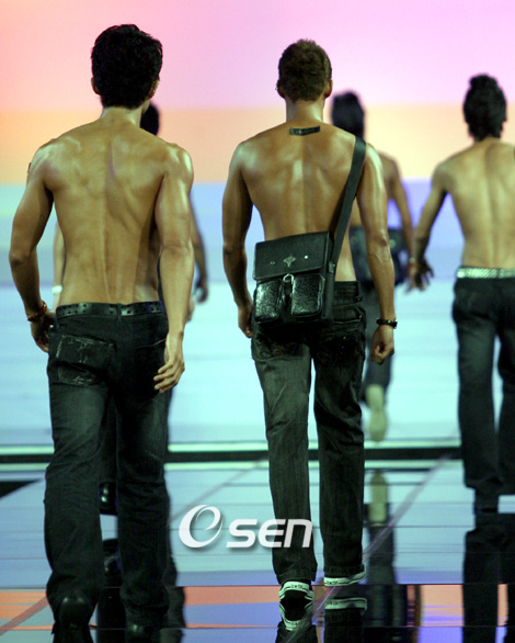 elite MODEL LOOK KOREA STARDONATION 행사가 19일 동대문 서울패션센타에서 열렸다. 이번 행사에서 모금된 모든 금액은 서울대학교 어린이 병원의 난치병 어린이 돕기 기금으로 전액 기부될 예정이다. 스타도네이션 행사의 일환으로 진행된 디자이너 이상봉의 패션쇼에서 조각같은 몸매의 남자 모델들이 워킹을 하고 있다./박영태 ds3fan@osen.co.kr