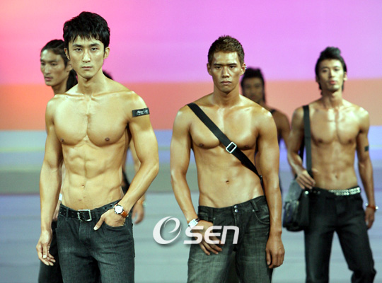 elite MODEL LOOK KOREA STARDONATION 행사가 19일 동대문 서울패션센타에서 열렸다. 이번 행사에서 모금된 모든 금액은 서울대학교 어린이 병원의 난치병 어린이 돕기 기금으로 전액 기부될 예정이다. 스타도네이션 행사의 일환으로 진행된 디자이너 이상봉의 패션쇼에서 조각같은 몸매의 남자 모델들이 워킹을 하고 있다./박영태 ds3fan@osen.co.kr