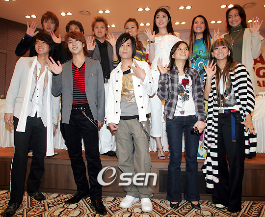 22일 광주 월드컵 경기장에서 열리는 '제3회 아시아송 페스티벌'에 앞서 해외 출연진 기자 회견이 21일 오후 전남 담양 리조트에서 열렸다. 필리핀의 키치 나달, 대만의 TANK, 싱가포르의 타냐추아, 일본의 아라시(마츠모토 준,아이바 마사키,사쿠라이 쇼,니노미야 카즈나리,오노 사토시), 홍콩의 천후이린, 일본의 코다쿠미, 태국의 카트리야 잉글리쉬, 베트남의 호 쿠인 흐엉이 함꼐 모여 포토 타임을 갖고 있다./주지영 기자 jj0jj0@osen.co.kr