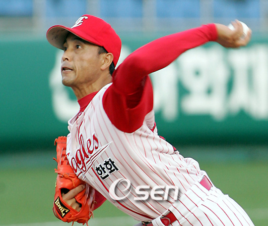 5수 끝에 전인미답의 개인 통산 200승을 달성한 뒤 아직 승리를 추가하지 못하고 있는 '회장님' 송진우가 6일만인 24일 부산 사직구장서 다시 마운드에 오른다. 지난달 29일 KIA전서 5이닝 5피안타 1실점을 기록하며 초반부터 터진 타선의 도움으로 200승 고지에 오른 송진우는 어렵사리 이룬 대기록 여파 탓인지 이후 등판 간격이 5, 7, 8일로 점점 늘어나더니 이번에 인터벌이 줄었다. 롯데가 비록 최하위이나 4위 KIA가 한 게임 차까지 쫓아와 3위 자리가 위태로워진 상황이라 직전 등판서 호투를 보여준 송진우를 투입, 필승을 거두겠다는 김인식 한화 감독의 의지가 엿보인다. 송진우는 올 시즌 롯데전서 3경기에 나와 1승 1패에 방어율 5.29로 별로 좋지 않았다. 앞선 두 차례 등판서 승리할 때나 패배할 때나 모두 투구내용이 나빴다. 하지만 세 번째 등판이었던 지난 18일 경기서는 확 달라졌다. 7⅔이닝 4피안타 2볼넷 2실점(1자책)으로 타자들의 지원이 없어 승리를 따내지 못했을 뿐 승리투수가 되기에 부족함이 없는 투구였다. 그런 이유인지 송진우는 개인적으로 2게임 연속 롯데전에 등판하게 됐다. 송진우에 맞설 롯데 선발투수는 에이스 손민한이다. 손민한 역시 올 한화전에서는 그리 재미를 보지 못했다. 10승 7패 방어율 2.83의 시즌 성적에 비해 2게임 1승 1패 방어율 3.60의 한화전 성적은 신통치 않다. 게다가 최근 두산전에 잇달아 등판, 잘 던지고도 2연패를 당해 승운도 따르지 않고 있는 게 현주소다. 다만 재미있는 사실은 손민한이 등판한 올 두 차례 한화전서 한 번은 부진하고도 승리투수가 되고 한 번은 호투하고도 패전투수가 되는 상반된 양상을 보였다는 점이다. 지난 4월 28일 경기에서 7이닝 9피안타 5실점하고도 승리투수가 됐지만 8월 2일 등판서는 8이닝 6피안타 무사사구 1실점의 빼어난 투구에도 불구하고 패전의 멍예을 쓴 바 있다. 송진우.