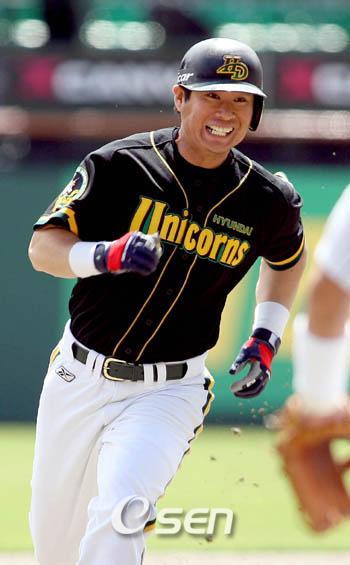 "1위 내놓아라". 무서운 기세를 타고 있는 현대가 KIA를 일축하고 선두 삼성에 한 경기 차로 바짝 다가섰다. 4위 전쟁을 벌이고 있는 KIA는 두산에 다시 1.5경기 차로 추격당했다. 현대는 24일 광주경기에서 선발 캘러웨이의 호투와 송지만의 3점홈런 등 장단 18안타를 몰아쳐 13-1로 대승, 전날 패배를 설욕했다. 현대는 이로써 이날 SK에 패한 삼성을 한 게임 차로 추격, 역전 한국시리즈 직행 가능성을 높였다. KIA는 투타에서 완패, 현대와의 올 시즌 상대 전적을 5승13패로 마감했다. 경기는 싱겁게 결판났다. 현대는 2회초 1사후 놀라운 집중력으로 승기를 잡았다. 이숭용이 KIA 선발 장문석을 상대로 볼을 골라 걸어나갔다. 이어 김동수의 3루 강습안타로 1,3루가 됐고 채종국의 우전안타로 가볍게 선제점을 뽑았다. 이어진 공격에서 서한규의 스퀴즈번트(야수선택)로 한 점을 추가한 뒤 송지만이 왼쪽 장외홈런을 터트려 5-0까지 달아났다. 현대는 4회 서튼의 우전안타로 한 점을 보탠 뒤 7회초 2사만루에서 KIA 투수 전병두의 폭투와 이택근의 2타점 좌전적시타로 3득점, KIA의 추격 의지를 완전히 꺾어놓았다. KIA는 이날 현대를 제물삼아 4위 굳히기에 나섰지만 10안타(4볼넷)를 치고 1득점에 그친 데다 마운드 역시 현대의 강력타선에 뭇매를 맞고 무너지는 통에 대패했다. 현대 캘러웨이는 6이닝 8안타 1실점으로 시즌 13승째를 올렸다. 송지만과 이택근이 각각 2안타 3타점, 2안타 2타점으로 타선을 이끌었다. 시즌 첫 선발승에 도전한 KIA 장문석은 3회를 버티지 못하고 강판, 3패째를 당했다. ■게임노트 ◆…현대 포수 김동수가 프로통산 3번째로 1800경기에 출전했다. 이날 김동수는 7번타자 겸 포수로 선발출전해 지난 90년 프로 데뷔 이래 17년만에 대기록을 달성했다. 김동수는 LG 삼성 SK를 거쳐 2003년 1월 현대로 이적한 뒤 그 해부터 2년 연속 한국시리즈 패권의 주전포수로 활약했다. sunny@osen.co.kr 송지만.