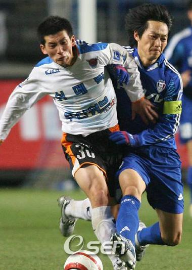 오는 10월 8일과 11일 가나전과 시리아전을 대비한 베어벡 3기가 발표되면서 새 얼굴 3인에 대한 관심도 증폭되고 있다. 특히 오장은(21, 대구)과 염기훈(23, 전북)은 베어벡 감독이 직접 관전한 K리그 후기 5라운드에서 인상적인 활약을 펼쳤기에 더욱 큰 관심을 받고 있다. ▲ 대구의 에이스, 오장은 제주도 출신인 오장은은 조천중을 졸업하고 2002년 FC 도쿄에 입단했다. 2002시즌에 당시 J리그 최연소 출전 기록(16세 8개월 20일, 현재는 모리모토의 15세 10개월)을 세운 바 있는 오장은은 청소년 대표로서 2005년 네덜란드 세계선수권에 출전했다. 2005년 대구 FC로 이적한 오장은은 홍순학 송정현 등과 함께 대구의 중앙 허리를 책임지며 좋은 활약을 펼쳤다. 파이팅이 좋고 활동 반경이 넓은 그는 2005년 시즌 23경기에 출장해 3골 2도움을 기록했다. 2006시즌에도 현재까지 27경기에 출전해 4득점 1도움을 기록했다. 지난 23일 전북과의 원정 경기에서 베어벡 감독이 지켜보는 가운데 헤트트릭을 기록하기도 했다. ▲ 인천 공격의 핵, 김치우 풍생중,고와 중앙대를 졸업하고 2004년 인천에 입단한 김치우의 본래 포지션은 왼쪽 사이드 미드필더이다. 2시즌 동안 30경기서 1골을 기록한 김치우는 아기치가 유럽으로 다시 돌아가자 중앙 공격형 미드필더로 보직을 변경하게 되었다. 올 시즌 31경기에 출전하며 주전 자리를 굳힌 그는 2득점 4도움을 기록, 경기력에 물이 올랐다는 평가를 받고 있다. 2005년 파르티잔 베오그라드서 잠시 임대 선수로 뛰기도 했던 김치우는 패싱능력이 뛰어나고 중거리슛이 일품이라는 평가를 받고 있다. 하지만 김두현과 백지훈 등이 버티고 있는 중앙 미드필더진에서 살아남을 수 있을지는 아직 미지수다. ▲ 전북의 새로운 피, 염기훈 염기훈은 올 시즌 K리그에 데뷔한 신인이다. 하지만 호남대를 졸업하고 전북에 오자마자 11번을 차지한 그는 왼쪽 미드필더로 나서 올 시즌 첫 경기부터 좋은 모습으로 사람들의 시선을 한 몸에 받았다. 왼발을 주로 쓰는 그는 정확한 크로스 능력과 킥력이 일품이다. 올 시즌 26경기에서 6득점 4도움을 기록 중인 그는 교통사고로 2달간 피치를 떠나 있었지만 지난 16일 대전과의 복귀전에서 활발한 움직임을 보여주었다. 또한 20일 상하이 선화와의 AFC 챔피언스리그 8강 2차전에서 1골 1도움을 기록하며 상승세를 타고 있다. 더욱이 염기훈도 베어벡 감독이 지켜본 23일 후기리그 6라운드에서 오장은과 같이 골을 기록하며 강한 인상을 남겼다. bbadagun@osen.co.kr 오장은과 김남일이 몸싸움을 벌이는 모습.