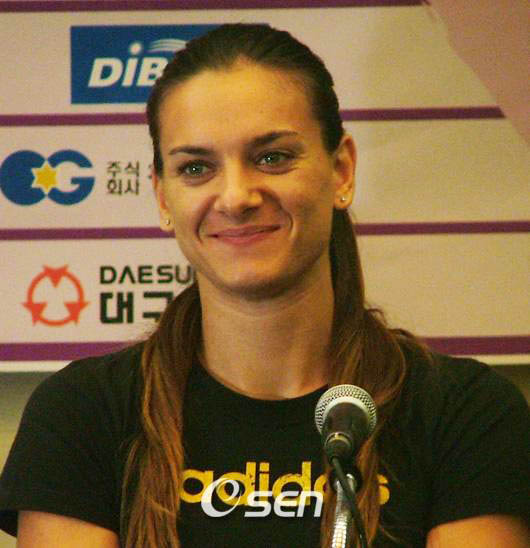 '미녀새' 엘레나 이신바예바(24세, 러시아)가 대구에서 세계기록을 경신하겠다는 욕심을 드러냈다. 아테네 올림픽 장대높이뛰기 금메달리스트이자 세계기록(5m 1)을 보유하고 있는 이신바예바는 27일 대구 인터불고 호텔에서 열린 2006 대구국제육상대회 기자회견에서 "내가 가지고 있는 세계기록을 넘는 것이 기본적인 목표이다" 며 "이번 대구 대회에서 세계신기록을 낼 수 있도록 노력하겠다. 한국과 대구의 팬들을 위해 최선을 다하겠다" 고 밝혔다. 장대를 넘기 전에 자기 자신만의 독특한 중얼거리는 습관에 대해서는 "장대를 뛰어 넘는 것에 대해 집중하는 나만의 방식이다" 며 "내용은 비밀이다" 고 말해 장내를 웃음바다로 만들기도 했다. 함께 경기에 나설 최윤희에 대해서는 "지난 2005년 함께 연습했던 것으로 기억한다" 며 "최선을 다하는 선수이기 때문에 잘할 것이라고 생각한다" 고 말했다. 이신바예바와 함께 기자회견에 나선 110m허들 세계기록 보유자이자 아테네 올림픽 금메달리스트인 류시앙은 자신의 허들 스타일에 대해 "처음보다 마지막에 가면서 빨라지는 모습을 보이는 게 내 스타일" 이라고 밝혔다. bbadagun@osen