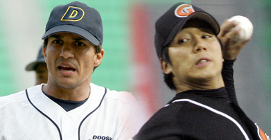 28일 잠실에서 열리는 두산-롯데전이 '갑작스레' 빅카드로 떠오르게 됐다. 이유는 전날 경기 결과 때문이다. 지난 27일 롯데는 거의 다 이긴 SK전을 연장 11회말 접전 끝에 끝내기 역전패당했다. 이 탓에 시즌 4연패 수렁에 빠지며 '탈꼴찌 매직넘버 2'를 번번이 줄이지 못하고 있다. 8경기가 남은 롯데는 최소 2승을 거둬 자력 7위 확정과 시즌 50승을 채워 마지막 자존심을 세울 필요가 있다. 그리고 28일 두산전은 그 분기점이다. 그러나 역시 27일 4위 KIA가 연장 11회 총력전을 벌이고서도 한화에 패했다. 이로 인해 5위 두산과의 승차는 0.5경기로 좁혀졌다. 한때 5차례 맞대결에서 1승 4패로 두산이 밀리고 승차가 2.5경기로 커졌을 때만 해도 4위 싸움은 마무리된 듯 보였다. 그러나 두산이 3연승을 거두는 사이 KIA는 2연패다. 28일 KIA가 한화에 또 지고 두산이 롯데를 잡으면 두산이 반게임차로 앞서 4위가 된다. 그리고 두산은 가장 확실한 선발 리오스를 투입해 롯데전 필승 의지를 다지고 있다. 올 시즌 프로야구 최다이닝 투수인 리오스는 최근 승운이 없어 KIA에 연패를 당했으나 명실상부한 현역 최고우완이다. 지난 11일 롯데전에서도 8이닝 11탈삼진 무실점으로 12승(14패)째를 따낸 바 있다. 가뜩이나 롯데 타선은 4연패 와중에 타선 침체가 심하다. 또한 물불 가릴 게 없는 두산은 리오스 뒤에 불펜진은 물론 박명환 및 심지어 24일 선발로 던졌던 이혜천까지 올릴 수도 있다. 반면 27일 연장 승부로 전력과 체력 소모가 극심한 롯데는 좌완 선발 장원준에 대한 의존도가 높다. 장원준은 12패(6승)를 당하고 있지만 평균자책점 3.70에서 드러나듯 안정적 피칭을 보여왔다. 9월 4차례 등판에서도 전부 퀄리티 스타트를 해냈다. 리오스-장원준.