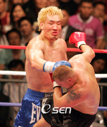 "최홍만이 경험을 더 쌓는다면 아무도 최홍만을 쓰러뜨릴 수 없을 것이다. 그야말로 최홍만은 천하무적이 될 것이다". 지난달 30일 일본 오사카조 홀에서 가진 K-1 월드 그랑프리 2006 개막전에서 '테크노 골리앗' 최홍만에게 연장 접전 끝에 심판 전원일치 판정승으로 도쿄 파이널까지 진출한 '배틀 사이보그' 제롬 르 밴너(프랑스)가 최홍만의 실력을 인정했다. 일본 스포츠신문 는 1일 최홍만을 꺾은 르 밴너가 "최홍만이 2년 정도 경험을 쌓는다면 아무도 KO시킬 수 없을 것"이라고 높이 평가했다고 보도했다. 3개월 전부터 채식 위주의 식단으로 125kg에서 113kg까지 체중을 감량했다고 밝힌 르 밴너는 "최홍만을 꺾기 위해서는 로킥밖에 없었다"며 "하지만 로킥마저도 쉽사리 닿지 않았고 로킥 공격을 해도 오히려 내 다리만 아팠다"고 털어놓았다. 이어 르 밴너는 "최홍만처럼 큰 스파링 파트너가 없기 때문에 제대로 대비하지 못한 측면도 있지만 최홍만도 잘했다"며 "몸집이 큰 데다 뼈까지 단단해서 마치 바위와 싸우는 것 같았다"고 밝혔다. 한편 최홍만을 공략한 방법이 로킥이었다고 르 밴너가 밝힘에 따라 앞으로 최홍만 역시 로킥에 대한 대비를 더욱 철저히 해야한다는 숙제를 안게 됐다. 최홍만은 지난해 도쿄 파이널에서 레미 보냐스키(네덜란드)와의 8강전에서도 로킥으로 고전하다가 판정패, 4강 진출을 놓침과 동시에 데뷔 첫 패배를 당한 바 있다. tankpark@osen.co.kr 최홍만과 세미 쉴트의 경기 장면.