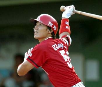 KIA 외야수이자 2번타자 김원섭(28)이 1일 롯데와의 더블헤더 2차전에서 3타수 3안타 3타점을 올리며 팀 승리에 일등공신이 됐다. 김원섭의 별명은 북한 용병. 팬들이 붙여주었고 '간첩 리철진', '탈북자' 등 주로 북한 사람들과 관련된 별명이다. 체형이 마른 데다 얼굴이 북한군 장교와 비슷하다는 게 이유였다. '북한 용병'이 알토란 같은 활약을 해주었다. 1차전 패배로 위기에 몰린 가운데 2차전 1-0으로 앞선 2회말 2사만루에서 밀어내기 볼넷을 골랐다. 4회말에서는 2사1루에서 찬스를 이어주는 우전안타를 치더니 5회 2사만루에서는 1타점 우전안타로 팀의 5점째를 올렸다. 7회서는 2사3루에서 좌전안타를 쳐내 쐐기 점수를 뽑아냈다. 대학 시절부터 만성 간염을 앓고 있는 김원섭은 매일 약을 복용하고 정기적으로 검진을 받고 있다. 팀 사정 때문에 쉬지도 못하고 매일 경기에 빠지지 않고 2번타자로 등장한다. 올해 모처럼 잡은 주전을 놓치지 않기 위해서다. 이날 3안타를 보태, 올해 174타수 60안타로 타율 3할4푼5리를 기록하고 있다. 만점 2번타자로 제몫을 톡톡히 하고 있다. 김원섭은 "체력이 많이 떨어져 지금은 공도 보이지 않고 힘이 없다"면서도 "2차전에는 지면 죽는다는 생각으로 열심히 뛰었다"고 말했다. "매일 운동장을 찾아오는 아내(이승희 씨)가 제일 힘이 되고 고맙다"고 말했다. 그리고 "4강행 여부가 달린 2일 롯데와의 마지막 경기에서는 다시 죽을 힘을 다하겠다"고 주먹을 불끈 쥐었다. sunny@osen.co.kr