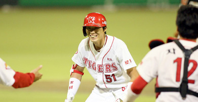 KIA가 지난해 최하위 수모를 딛고 당당히 2년만에 포스트시즌에 진출했다. 두산과 치열한 4위 경쟁을 벌였던 KIA는 2일 롯데와의 시즌 최종경기에서 철벽계투와 김원섭의 끝내기안타에 힘입어 2-1로 승리했다. 최종성적 64승59패3무(.520)를 기록, 이날 한화에 뼈아픈 패배를 당한 두산의 추격을 뿌리치고 시즌 4위를 확정지었다. 이로써 KIA는 2004년 준플레이오프 진출 이후 2년만이자 통산 16번째로 포스트시즌 무대를 밟게 됐다. 아울러 지난 시즌 창단 이후 첫 최하위의 수모도 4강 재도약으로 함께 씻어냈다. KIA는 오는 8일부터 대전구장에서 열리는 1차전을 시작으로 3위 한화와 3전2선승제의 준플레이오프를 갖는다. 승부는 1-1로 팽팽하던 연장 10회말에 결정났다. 선두타자 손지환이 3루수 내야안타로 출루에 성공했다. 후속타자들이 범타로 물러나 찬스를 날리는 듯 했으나 이현곤이 우전 바가지안타로 1,3루 찬스를 만들었다. 이후 이용규의 고의볼넷으로 만든 만루에서 김원섭이 좌익수 앞에 떨어지는 끝내기안타를 터트려 승부에 마침표를 찍었다. 이날 8회부터 등판 3이닝을 무실점을 막고 승리를 따낸 한기주는 팀을 포스트시즌에 진출시키고 시즌 10승을 달성했다. KIA의 포스트시즌행은 길고도 험했다. KIA는 올해 10억루키 한기주와 마무리 장문석을 영입해 다크호스로 떠올랐다. 그러나 개막 이후 김진우와 강철민의 부상으로 마운드가 흔들렸고 한기주도 선발적응에 실패했다. 장문석마저 소방수로 제몫을 못했다. 결국 4강권에 진입하지 못하고 한때 6위까지 떨어지는 악전고투를 했다. 그러나 7월이후 김진우가 가세하고 그레이싱어가 승수를 쌓으면서 원투펀치가 살아났고 한기주를 미들맨으로 돌리면서 마운드에 힘이 강해졌다. 한기주는 시즌막판까지 살인적인 일정을 소화하며 팀 4강진출의 일등공신이 됐다. 조경환 김원섭이 타선에 힘을 불어넣으며 공격력도 힘이 붙었고 두산과의 치열한 4위 전쟁에서 마침내 승전했다. 끝내기 안타로 KIA 4강행을 이끈 김원섭이 팀동료들과 기쁨을 나누고 있다.