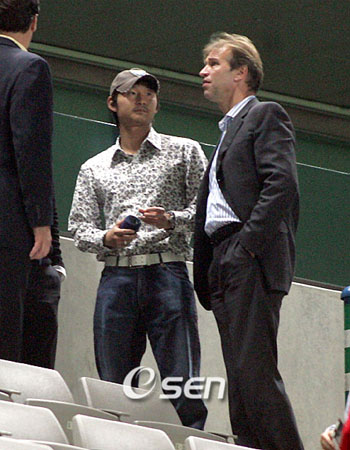 오른 발목 부상 중인 '미꾸라지' 이천수(25, 울산 현대)가 핌 베어벡 감독이 이끄는 대표팀에서 제외됐다. 이천수는 4일 울산과 FC 서울의 삼성 하우젠 K리그 2006 후기리그 경기가 열린 서울 상암 월드컵 경기장에서 기자들과 만나 5일 파주 대표팀 트레이닝센터(NFC)에 들어가지 않기로 베어벡 감독 및 코칭스태프의 허락을 얻었다고 밝혔다. 현재 이천수는 오른 발목 복사뼈 부위의 부기로 인해 물을 빼냈지만 아직까지 발바닥 통증을 느끼고 있으며 걷는 것만 가능할 뿐 뛰는 등 스피드를 내지 못해 오는 8일 가나전과 오는 11일 시리아전에 출전하기 힘든 상태다. 이날 서울과 울산의 경기를 관전하기 위해 대표팀 코칭스태프가 총출동한 가운데 이천수는 "베어벡 감독이 가나전과 시리아전에 뛰기 힘든 상태라면 대표팀 소집에 구태여 응할 필요가 없다고 얘기했다"며 "경기는 이번만 있는 것이 아니므로 하루 빨리 부상에서 회복되길 바란다는 말을 해줬다"고 말했다. 한편 김정남 울산 감독도 "이천수의 부상이 호전돼 서울과의 경기에 45분 정도라도 뛸 수 있을 것으로 봤는데 의외로 차도가 느리다"며 "아직까지 훈련도 못한 상태에서 파주 NFC에 들어가 훈련하긴 어렵다고 본다"고 전했다. tankpark@osen.co.kr 이천수가 베어벡 감독과 면담하고 있다./상암=손용호 기자 spjj@osen.co.kr