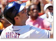 [OSEN=로스앤젤레스, 김형태 특파원] 카를로스 델가도와 데이빗 라이트 듀오가 뉴욕 메츠의 첫 승을 견인했다. 이들은 5일(한국시간) 셰이스타디움에서 열린 LA 다저스와의 내셔널리그 디비전시리즈(NLDS) 1차전에서 6안타 5타점을 합작하며 팀의 6-5 승리를 이끌었다. 특히 델가도는 0-1로 끌려가던 4회 동점 솔로포와 4-4 동점이던 7회 적시타를 때려내는 등 5타수 4타안타 2타점으로 불방망이를 휘둘렀다. 서부와 동부의 대표적인 팀 답게 팽팽한 긴장감이 시종일관 감돌았다. 허벅지 부상으로 갑작스럽게 전열에서 이탈한 올란도 에르난데스 대신 신인 존 메인을 내세운 메츠는 메인이 기대 이상의 호투를 펼쳐준 덕에 1승을 안을 수 있었다. 메인은 생애 가장 큰 경기라는 부담을 떨치며 5회 1사까지 6피안타 5탈삼진 1실점으로 팀 승리의 초석을 놓았다. 선취점은 다저스가 올렸다. 2회초 제프 켄트, J.D. 드루의 연속안타로 잡은 무사 1,2루에서 러셀 마틴의 타구 때 켄트와 드루가 잇따라 홈에서 횡사하면서 기회가 무산되는 듯했지만 말론 앤더슨의 좌측 2루타로 러셀이 홈을 밟아 1-0. 메츠는 반격은 4회부터 시작됐다. 1사 뒤 좌타석에 등장한 델가도가 다저스 선발 데릭 로의 낮은 싱커를 어퍼스윙으로 걷어올려 가운데 담장을 훌쩍 넘기면서 열기가 고조됐다. 한 타자 뒤 클리프 플로이드도 질세라 로우가 던진 몸쪽 높은 공을 그대로 잡아당겨 우축 담장을 넘긴 것. 단숨에 2-1 역전. 메츠는 6회 데이빗 라이트의 2타점 2루타로 4점째를 만들며 승부를 가르는 듯했다. 그러나 다저스의 투지도 만만치 않았다. 리드를 날린 다저스는 7회 라파엘 퍼칼의 적시타와 노마 가르시아파러의 2타점 좌측 2루타로 단숨에 동점을 만들며 기세를 올렸다. 하지만 내셔널리그에서 가장 무서운 타선을 자랑하는 메츠는 7회말 곧바로 전세를 뒤집는 데 성공했다. 호세 레예스와 카를로스 벨트란이 연속 볼넷으로 멍석을 깔자 4회 홈런의 주인공 델가도가 좌측 적시타로 레예스를 불러들이자 뒤이은 라이트가 우측 짧은 2루타로 벨트란 마저 득점시킨 것. 완전히 승기를 잡은 메츠는 8회 애런 헤일먼, 9회 특급 마무리 빌리 와그너를 투입, 다저스의 추격을 1점을 틀어막고 1점차 승리를 지켰다. 다저스는 라몬 마르티네스의 2루타로 한 점을 따라 붙은 9회 2사 2루서 가르시아파러가 삼진으로 물러나면서 아쉽게 무릎을 꿇었다. workhorse@osen.co.kr 데이빗 라이트.