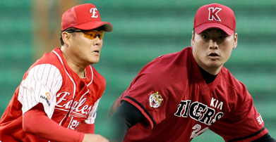 "호랑이 킬러냐", '독수리 킬러냐". 8일 대전구장에서 열리는 준플레이오프 1차전은 '호랑이 킬러' 문동환(33.한화)과 '독수리 킬러'김진우(24.KIA)의 선발 맞대결로 펼쳐진다. 7일 김인식 한화 감독과 서정환 KIA 감독은 투 투수를 1차전 선발투수로 예고했다. 문동환은 말그대로 KIA만 만나면 싱싱 던졌다. 올해 KIA를 상대로 6경기에 등판, 5승(무패)을 건졌다. 올해 자신이 거둔 16승 가운데 30% 정도를 KIA를 상대로 올렸다. 37⅔ 이닝을 던져 평균자책점 1.67에 불과하다. 그렇기 때문에 문동환의 가장 큰 무기는 자신감. 워낙 자신있게 볼을 뿌리는 데다 특유의 노련미까지 갖춰 KIA 타자들이 문동환의 유인구에 알고도 당했다. 99년 롯데시절 포스트시즌 5경기(플레이오프, 한국시리즈)에서 승리를 따내지 못하다 지난해 SK와의 준플레이오프에서 첫 승을 올렸다. 이번 KIA를 상대로 2승째에 도전하는 셈이다. 김진우는 2002년 입단한 이후 포스트시즌에서 단 한 번도 웃지 못했다. 입단과 함께 150km에 이르는 직구와 커브, 슬라이더 등을 자유롭게 던지는 괴물이었지만 큰 경기에 약점을 보였다. 2002년~2004년까지 3번의 포스트시즌에서 승리 또는 세이브 기록이 없다. 더욱이 입단 이후 잦은 부상으로 팀에 시름을 안겨주었다. 그러나 아직도 독심을 품고 던지면 공략하기 힘든 투수임에는 분명하다. 올해 두 번에 걸친 부상 중에도 10승을 거두었다. 한화를 상대로 5경기에서 31⅔이닝을 던졌고 2승1패 평균자책점 1.72에 기록했다. '호랑이킬러' 문동환 못지 않은 '독수리 킬러'다. 어깨부상 후유증이라는 약점이 있지만 올해는 반드시 포스트시즌 첫 승을 올리겠다는 각오가 남다르다 문동환-김진우