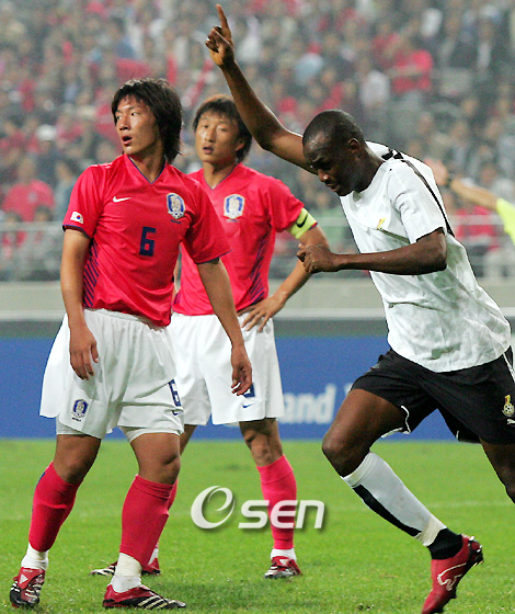 핌 베어벡 감독이 이끄는 대표팀이 가나와의 평가전에서 1-3으로 무릎을 꿇은 원인이 중앙수비 불안과 리더 부재가 원인인 것으로 분석된다. 한국은 8일 서울 상암 월드컵 경기장에서 가진 가나와의 경기에서 4개월 전 스코틀랜드에서 당했던 1-3 패배를 답습했지만 이미 패배는 예견되었던 것이라는 평가가 지배적이다. 우선 가나는 골키퍼 리처드 킹슨을 비롯해 수비수 존 멘사, 미드필더 마이클 에시엔과 스티븐 아피아, 설리 알리 문타리, 공격수 아사모아 기안 등 독일 월드컵 출전 여부를 굳이 거론하지 않아도 세계 명문 클럽에서 뛰었던 선수들이 즐비했다는 점에서 이미 한국으로서는 '한수 접고' 경기에 임했다고 봐야 하기 때문이다. 에시엔 아피아 문타리 등으로 이어지는 가나의 막강 허리는 셋이 합쳐 A매치 출전이 28경기 밖에 되지 않는 백지훈 오장은 이호가 상대하기엔 애당초 무리가 있었다는 평가. 비록 전반전에 시종일관 밀리긴 했지만 실점을 허용하지 않았다는 점에서 '못했다'고 매도할 수는 없다. 그러나 포백 중 중앙수비의 불안이 한국의 발목을 잡았다. 김동진(24, 제니트 상트페테르부르크)과 김진규(21, 주빌로 이와타)의 호흡이 전혀 맞지 않은 것. 김동진과 김진규의 중앙 수비가 불안하다보니 위험한 상황이 자주 연출됐고 결국 수비 강화를 위해 김동진을 빼고 경험많은 김영철(30, 성남 일화)을 투입할 수 밖에 없었다. 반면 3년만에 A매치에 출전한 박주성(22, 광주 상무)의 왼쪽 풀백 쪽이 뚫리긴 했지만 '불합격' 평가를 내리기엔 경험이 일천하다는 점에서 너무나 성급하고 차두리(26, 마인츠 05) 역시 한 차례 실수한 것이 걸리지만 오른쪽 풀백으로 치른 첫 A매치를 무난하게 치렀다. 또 한가지 패인을 들자면 어린 선수로 가나전을 치르다보니 위기 상황을 제어할 수 있는 리더가 없었다는 점이다. 주장 완장을 찬 김동진은 가나의 막강 허리진에 이은 공격을 막기에 급급하다보니 제대로 리더십을 발휘하지 못했다. 김동진이 김영철과 교체된 이유가 김진규와의 호흡 부조화, 오는 11일 시리아전을 앞둔 포석 외에도 리더십 부족이라는 문제가 있었기 때문이다. 하지만 이런 패인들은 오히려 어린 선수들에게 '쓰디 쓴 보약'이 됐다. 같은 아시아 국가도 아니고 독일 월드컵에서 16강까지 올랐던 가나와의 경기에서 노출된 문제였기 때문에 크게 우려할 만한 상황은 아니다. 대부분 아시안게임에서 뛸 선수들이 대회를 2개월 정도 남은 시점에서 드러난 문제점을 앞으로 어떻게 고쳐나갈지 관심이 모아진다. tankpark@osen.co.kr 후반 두 번째 골을 허용한 뒤 김진규(왼쪽)와 김영철이 맥이 풀린 표정을 짓고 있다./상암=주지영 기자 jj0jj0@osen.co.kr