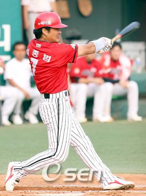 올 시즌 2번의 2군 강등 수모를 포스트시즌서 씻어내려는 '바람의 아들' 이종범(36)이 'KIA호'의 운명을 걸고 2차전에 나서게 됐다. 이종범은 지난 8일 한화와의 준플레이오프에서 3타수 무안타에 그치며 팀의 2-3 역전패를 지켜봐야 했다. 더욱이 승부처에서 무기력하게 물러났던 이종범으로선 9일 2차전서 1차전 부진을 만회하며 팀을 벼랑 끝에서 살려내야 하는 책임을 맡고 있다. 1차전에 5번 타자 중견수로 선발 출장한 이종범은 특히 2-0으로 앞선 3회 2사만루 찬스에서 성급한 공격으로 3루 땅볼에 그쳐 추가점을 뽑는 데 기여하지 못했다. KIA로선 초반 홈런 2방을 맞고 흔들리던 한화 선발 문동환으로부터 추가점을 올려 승기를 잡을 수 있는 찬스였지만 이종범이 기대에 못미친 것이다. 이종범은 흔들리고 있던 문동환을 좀 더 괴롭혔어야 했는데 볼카운트 0-2에서 3구째를 타격했다. 분위기상 좀 더 기다려야 하는 시점에서 조금 성급한 공격이었다. 이 순간이 1차전 최고의 승부처였지만 이종범이 무기력하게 물러난 것이다. 서정환 KIA 감독은 1차전 시작 전부터 "이종범이 잘해야 한다. 그래야 우리가 이길 수 있다"며 이종범의 맹활약을 기대했다. 신인이던 1993년 한국시리즈 MVP인 이종범이 한국시리즈 3회 우승의 관록과 큰 경기에서 강한 베테랑 주장으로서 젊은 후배들을 이끌어주기를 고대하고 있는 것이다. 하지만 상대 벤치는 이종범을 '종이 호랑이'로 여기고 있는 분위기다. 한화 벤치는 3회 승부처에서 1회 홈런을 날린 4번 이재주와 정면 승부를 피하고 올 시즌 '야구 천재'의 모습을 제대로 못보여준 이종범과의 대결을 선택했다. 그리고 성공을 거뒀다. 이종범의 올 시즌 성적은 93경기서 타율 2할4푼2리(339타수82안타), 홈런1개, 타점 21개, 도루 10개가 고작일 정도로 부진, 예전의 이종범이 아니라는 분석을 하고 있는 것이다. 그러나 정규 시즌 성적표는 그야말로 참고사항에 불과할 뿐이다. 이종범은 시즌 막판 두산과의 치열한 '4강싸움'때 선봉장으로 맹활약, 이전의 부진을 만회하며 포스트시즌 맹활약을 별렀다. 9월에는 3할대의 고감도 방망이를 휘둘렀다. 특히 올 시즌 개막 직전 열렸던 월드베이스볼클래식(WBC)에서 맹타를 휘두르며 한국의 4강 진출 위업 달성에 일등공신이었던 모습이 생생히 남아 있는 KIA 팬들로서는 이종범이 살아나기를 간절히 원하고 있다. 1차전 패배로 벼랑 끝에 몰린 KIA로선 간판타자이자 주장인 이종범이 9일 2차전에서는 예전의 활기찬 활약을 펼쳐주기를 학수고대하고 있다. 이종범이 살아야만 승리가 보이기 때문이다. 이종범이 '종이 호랑이'로 여기고 만만하게 보고 있는 상대에게 카운트 펀치를 날릴 것인지 2차전이 궁금하다. 이종범이 1차전의 부진을 딛고 광주 홈구장에서는 '바람몰이'에 성공할 것인지 주목된다. sun@osen.co.kr