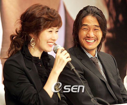 1995년 삼풍백화점 붕괴 사고때 사랑하는 사람을 잃어버린 한 남자가 10년후 7번 국도를 따라 펼쳐지는 아름다운 자연 풍광을 따라가며 옛 사랑을 그리는 영화 '가을로'의 제작보고회가 9일 프라자 호텔에서 열렸다. 김지수가 이제는 원숙한 미를 풍기고 있다. 김지수가 실수로 '지태 아저씨'라고 호칭을 부르자 유지태가 웃고 있다./손용호 기자spjj@osen.co.kr