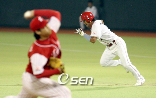 천재의 발에 괴물이 농락당했다. 준플레이오프 2차전은 승패에 관계없이 흥미로운 대결이 펼쳐졌다. 노회한 야구천재 이종범(36)과 괴물루키 류현진(19)의 만남이었다. 이종범은 1차전에서 중요한 찬스에서 범타로 물러나는 등 4타수 무안타로 부진했다. KIA에게 올 시즌 최고투수 반열에 오른 류현진은 난공불락의 요새와 같았다. 이미 한 차례 격돌해 완봉 직전까지 가는 수모를 당했다. 그러나 미세한 틈은 있었다. 류현진이 빠른 발을 갖춘 주자가 나가면 흔들리는 점이었다. 그 실례를 이종범이 여실히 보여주었다. 1회말 첫 타석에서 중견수 플라이로 물러난 이종범은 4회말 선두타자로 나와 초구를 후려쳐 깨끗한 좌전안타로 출루, 광주구장을 뜨겁게 달구었다. 관중석에서는 "뛰어"라는 함성이 쏟아졌고 이종범은 이재주 타석에서 2구째 도루를 감행, 2루에 안착했다. 이종범의 도루 본능은 식지 않았다. 이재주가 고의볼넷으로 출루하고 후속타자 조경환 타석에서 또다시 2구째 전광석화처럼 3루를 향해 돌진했다. 깜짝 놀란 한화 포수 신경현이 볼을 뿌렸지만 이종범의 발은 이미 3루를 밟고 있었다. 결국 이종범은 조경환의 우익수 희생플라이 때 여유있게 홈을 밟았다. 치명적인 상황은 6회에 나왔다. 1사후 류현진을 상대로 중견수 데이비스의 왼쪽으로 가는 안타성 타구를 날리고 2루까지 전력 질주했다. 데이비스의 송구가 비켜나갔고 절묘한 헤드퍼스트 슬라이딩으로 세이프, 발로 2루타를 만들었다. 류현진은 장성호를 내야 플라이로 잡았으나 이후 대타 홍세완을 고의볼넷으로 내주면서 완전히 흔들렸다. 결국 김원섭에게 볼넷까지 내준 뒤 이현곤에게 치명적인 만루홈런을 맞고 와르르 무너졌다. 평균자책점, 다승, 탈삼진의 투수 3관왕에 빛나는 괴물루키가 노회한 천재에게 제대로 한 방 먹은 셈이었다. sunny@osen.co.kr 이종범이 4회 류현진의 투구 폼을 완전히 빼앗은 뒤 2루 도루를 시도하고 있다./광주=박영태 기자 ds3fan@osen.co.kr