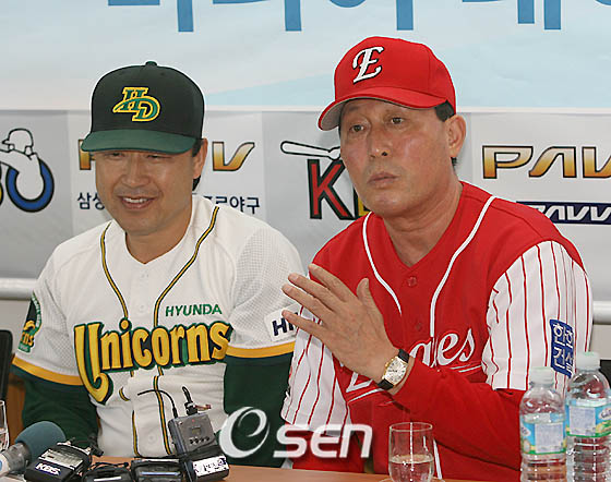 13일 시작되는 플레이오프는 양팀 사령탑의 몸값을 한 단계 더 끌어올리는 무대가 될 전망이다. 대한민국 야구 대표 브랜드의 일전으로 팬들의 관심을 끌어모으는 가운데 올 시즌을 끝으로 계약이 만료되는 양팀 사령탑의 몸값에도 영향이 미칠 것으로 예상돼 더 뜨거운 열전이 예고되고 있는 것이다. '믿음의 야구' 김인식(59) 한화 감독은 특유의 선수에 대한 믿음을 바탕으로 한국시리즈 2회 우승과 WBC 4강 기적을 이룬 뒤 국민 감독으로 승격됐다. 지난해에 이어 2년 연속으로 한화를 플레이오프까지 끌어올려 이미 몸값은 대폭 상승이 확실시 되고 있다. 타팀으로 옮길 가능성도 있지만 현재 한화 구단이 잔류를 요청하고 있어 남게 되면 올해 연봉 2억 원보다 내년에는 훨씬 더 많아질 것으로 보인다. '짜내기 야구' 김재박(52) 현대 감독은 '찬스는 곧 득점'의 필승공식을 앞세워 한국시리즈를 네 번이나 제패하며 감독시장의 '블루칩'이 됐다. 역시 타 팀으로 옮겨가지 않아도 현대에서 최고 연봉 감독으로 탄생할 가능성이 크다. 3년 계약이 끝나는 김재박 감독은 올해 2억 5000만 원의 연봉을 받았다. 따라서 내년에는 3억 원 연봉도 충분히 바라볼 만하다. 더욱이 플레이오프를 승리로 이끌고 한국시리즈 마저 제패하면 3억 원 이상은 무조건 보장된다고 해도 과언이 아니다. 이미 감독 시장의 내년 시즌 몸값은 최근 SK로 복귀한 김성근(63) 감독이 '잣대'가 됐다. 김 감독은 2년 계약에 계약금 3억 원, 연봉 2억 5000만 원 등 총 8억 원에 사인했다. 따라서 그동안 한국시리즈 성적 등에서 김 감독보다 앞서 있는 김인식 감독과 김재박 감독도 내년 연봉 대폭 상승도 요구할 만하게 됐다. 김인식 감독은 한국시리즈 2회 우승, 김재박 감독은 한국시리즈 4회 우승의 화려한 이력을 자랑한다. 이처럼 이번 플레이오프는 김인식 감독과 김재박 감독이 '내년 몸값'을 놓고 한 판 대결을 벌이는 셈이 됐다. 플레이오프에서 승리하고 한국시리즈까지 거머쥔다면 연봉 대폭 상승이라는 달콤한 열매도 뒤따를 전망이다. 양 감독의 포스트시즌 맞대결은 이번이 세 번째 만남이다. 김인식 감독이 두산을 맡고 있던 지난 2000년 한국시리즈에서 4승 3패로 김재박 감독이 웃었다. 먼저 3연승을 올리고도 내리 3연패한 뒤 7차전에서 가까스로 이겼다. 이듬해 김인식 감독의 복수전이 펼쳐졌다. 플레이오프에서 격돌해 3승 1패로 김재박 감독을 누른 뒤 한국시리즈에서 삼성까지 꺾고 우승을 차지했다. 두 감독 모두 단기전에 강하고 나름대로의 치밀한 전략을 갖고 있어 우열을 가리기 쉽지 않다. 올해 상대전적도 9승9패로 승부를 내지 못했다. 서로를 그렇게 부담스럽게 생각하지 않는 것도 비슷하다. 김인식 감독은 상대적으로 열세인 전력으로 한국시리즈 두 차례 우승을 거머쥐었다. 경기 설계 능력이 뛰어나고 자신의 밑그림대로 경기를 풀어간다. 항상 노림수를 갖고 있고 승부처에서는 전혀 주저하지 않고 승부수를 띄우는 감각도 뛰어나다. 선수들과의 교감도 잘 이뤄지고 있어 선수들이 감독의 의중을 잘 파악한다. 김재박 감독은 자타가 공인하는 짜내기 야구의 달인. 11년째 팀을 맡아 선수들을 '자동 득점기계'로 만들어놓았다. 선수들은 찬스만 되면 한 치의 오차도 없이 득점을 향해 움직인다. 진루타 희생번트 히트앤드런 등 짜내기 야구의 전형을 보여준다. 수비 시프트도 뛰어나 마치 상대 선수를 향해 옴짝달싹 못하는 거미줄을 친다는 느낌을 받는다. 두 감독들은 아마와 프로를 망라해 서로 한 팀에서 유니폼을 입은 적이 없다. 김인식 감독은 배문고 한일은행 동국대 해태 쌍방울 OB(두산)를 거쳐 한화 지휘봉을 잡았다. 김재박 감독은 대광고 영남대 한국화장품 MBC(LG) 태평양을 거쳐 11년째 현대 감독을 맡고 있다. 지난 3월 WBC대회에서 감독과 코치로 함께한 게 유일했다. 두 명품 감독들 가운데 한 명만 한국시리즈에 진출, 선동렬 감독과 대결을 갖는다. '믿음의 야구'와 '짜내기 야구' 두 브랜드 가운데 누가 웃을까. 올해 플레이오프는 명품을 골라보는 재미가 제법 쏠쏠할 것만 같다. sun@osen.co.kr 김인식 한화 감독과 김재박 현대 감독이 12일 오후 한국야구위원회에서 열린 플레이오프 미디어데이 행사에서 기자회견을 갖고 있다./김영민 기자 ajyoung@osen.co.kr