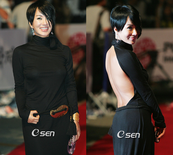 한 케이블 tv의 개국 축하쇼에서 파격적인 노출 패션으로 등장해 화제를 모았던 엄정화가 제 11회 부산 국제 영화제 개막식 레드 카펫을 밟으면서도 그녀만의 요염한 섹시미를 마음껏 과시했다. 12일 저녁 부산 수영만요트 경기장 야외 상영관에서 열린 개막식에 앞선 레드 카펫 행사에서 엄정화는 엉덩이 바로 위까지 등이 훤히 드러나는 블랙 드레스 차림으로 나와 많은 팬들의 눈길을 끌었다./부산=주지영 기자 jj0jj0@osen.co.kr