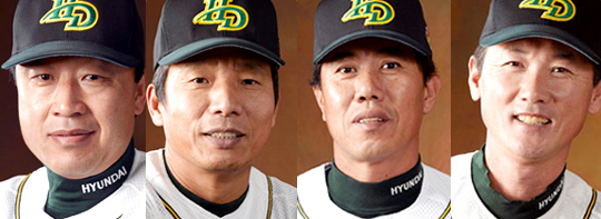 김인식 한화 감독은 네 명의 감독과 싸운다?. 지난 13일 플레이오프 1차전을 앞둔 현대 덕아웃 앞. "아이구, 감독님 오셨어요". 이런 인사를 받은 인물은 김재박 감독이 아니라 김용달(50) 타격코치. LG 감독 후보에 올랐다는 얼마 전 언론 보도 때문이다. "그것 때문에 피곤해 죽겠어"라며 곤혹스러운 표정을 짓는 김 코치. 이미 3년 전에도 LG 감독 후보에 오르기도 했다. 김시진(48) 투수코치도 마찬가지다. 주위 사람들이 "감독님 안녕하세요"라고 드러내놓고 말을 걸어온다. 김 코치도 올 시즌을 마치고 김재박 감독의 거취에 따라 감독으로 승격할 가능성도 생겨나고 있다. 기자들이 우르르 몰려들어 한 마디라도 듣기 위해 귀를 쫑긋 세운다. 실제로 이들은 정진호(50) 수석코치와 함께 감독급 코치라는 말을 듣고 있다. 타 팀의 감독들과 맞먹는 경력과 실력을 지니고 있고 모두 억대 연봉을 받고 있다. 한때 후배들이 40대 감독 천하를 이루며 대권을 잡고 있을 때 조용히 현대 유니폼을 입고 자신의 일에만 몰두해왔다. 그러다 올해 계약 만료되는 김재박 감독의 이적설이 나오면서 이들도 사령탑으로 핵분열을 하는 게 아니냐는 조심스러운 전망이 나오고 있다. 정진호 수석코치는 김재박 감독의 분신이나 다름없다. 96년 창단 멤버로 김 감독을 보좌한 지가 11년째다. 연봉도 1억 1700만 원에 이른다. 김시진 코치는 98년 투수코치로 부임해 9년동안 투수들을 조련해 4번의 한국시리즈 우승에 기여했다. 연봉은 1억 1500만 원. 김용달 코치 역시 99년 말 현대에 합류, 현대의 막강 타선을 구축해 능력을 인정받았다. 연봉은 1억 1200만 원. 그래서인지 "김인식 감독이 4명의 감독과 싸우고 있다"는 우스개 소리도 나오고 있다. 이번 포스트시즌은 현대의 성적도 중요하지만 김재박 감독의 거취와 함께 이들 3명의 감독급 코치들의 행보에도 관심이 쏠려있다. sunny@osen.co.kr 김재박 감독-김용달 코치-김시진 코치-정진호 코치=현대 유니콘스 제공.
