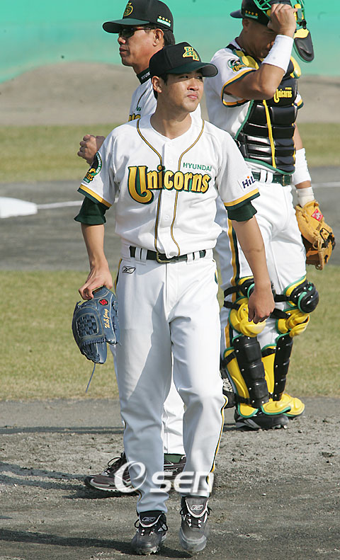 장원삼도 피해가지 못했다. 이번 포스트시즌에서 올해 신인투수 빅 트리오가 모두 첫 등판서 쓰라린 맛을 봤다. 투수 3관왕에 빛난 류현진(한화)과 KIA 4강의 주역 한기주(19), 그리고 현대의 대졸 신인 좌완 장원삼(23)이 나란히 포스트시즌에서 호된 신고식을 치른 것. 우선 한기주는 지난 8일 준플레이오프 1차전에서 9회말 선두타자 김태균에게 안타를 맞은 뒤 결정적인 보크를 범해 무사 2루를 만들어주었다. 결국 1사만루에 몰린 끝에 끝내기 희생플라이를 맞고 패전투수가 됐다. 류현진도 9일 2차전 선발투수로 등판해 첫 승을 노렸지만 선취점을 내준 뒤 6회말 이현곤에게 만루홈런을 얻어맞고 패전의 멍에를 썼다. 장원삼도 징크스의 굴레를 벗어나지 못했다. 14일 플레이오프 2차전에 선발등판했으나 1회초 김태균에게 선제 투런홈런을 얻어맞았다. 매회 불안한 피칭을 계속하다 3회초 1사 후 데이비스에게 좌전안타를 맞고 김태균과 승강이 끝에 볼넷을 내주고 완전히 흔들렸다. 결국 이범호에게 초구 높은 볼을 던지자 김재박 감독은 난조 기미가 있다고 판단, 곧바로 황두성으로 교체했다. 포스트시즌은 산전수전 다 겪은 베테랑 선수들도 긴장감과 부담감을 느낀다. 루키들도 웬만한 강심장이 아니고서는 제 실력을 발휘하기 힘들다. 더구나 첫 등판이었으니 중압감은 상상을 초월할 것이다. 정규리그를 호령했던 이들 트리오도 큰 경기 부담감은 어쩔 수 없는 모양이다. sunny@osen.co.kr 3회초 1사 1루서 장원삼이 김태균에게 볼넷을 내줘 1사 1,2루가 되자 김시진 투수코치가 마운드에 올라 강판시키고 있다./수원=손용호 기자spjj@osen.co.kr