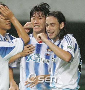 서울이 광주를 누르고 플레이오프 진출에 대한 실낱같은 희망을 살려나갔다. 14일 오후 3시 광주 월드컵 경기장에서 열린 삼성 하우젠 K리그 2006 후기 9라운드 경기에서 전반 35분 김은중이 선제골을 넣고 후반 24분 아디가 추가골을 넣으며 2-0으로 눌렀다. 이로써 서울은 승점 15점을 기록해 선두권을 압박했다. 후기리그 우승을 위해 배수진을 친 서울은 경기 내내 광주를 밀어붙이며 골찬스를 노렸다. 전반 시작하자마자 두두의 기습적인 슛으로 포문을 연 서울은 김은중과 두두 그리고 히칼도가 시종일관 광주의 진영에서 골을 노렸다. 광주 역시 이동식과 강용 등 미드필더들이 분전했지만 서울의 막강 공격력을 막기에는 힘이 달린 모습이었다. 광주를 밀어붙이던 서울은 전반 35분 서울의 슈팅을 광주 한동진 골키퍼가 펀칭했으나 바로 앞에 있던 김은중이 다시 밀어넣어 가볍게 선취골을 만들어냈다. 후반 들어 정경호와 남궁웅을 들여보낸 광주는 동점골을 노렸으나 그 뜻을 이루지 못했고 후반 24분 히칼도가 올린 코너킥을 아디가 왼발 발리슛으로 연결하며 경기에 쐐기를 박았다. 이후 김승용과 박주영을 투입한 서울은 광주의 막판 공세에 시달렸지만 김병지의 선방에 힘입어 무실점 완승을 거두었다. 이 날 경기에서 박주영은 후반 34분 두두와 교체되어 운동장을 밟았으나 이렇다한 모습은 보여주지 못했다. 특히 경기 종료 직전 단독 드리블로 페널티 에어리어까지 침투했으나 자신감없는 모습으로 슈팅까지 시도하지는 못했다. 한편 울산 문수 월드컵 경기장에서 벌어진 울산과 제주의 경기는 양 팀이 2골씩 주고받는 격전 끝에 2-2로 비겼고 전북은 후반 20분 터진 김형범의 골로 홈에서 전남을 1-0으로 눌렀다. 경남은 홈경기에서 후반 29분 김진용의 도움을 받은 하리가 득점을 기록하면서 부산을 1-0으로 제쳤다. bbadagun@osen.co.kr