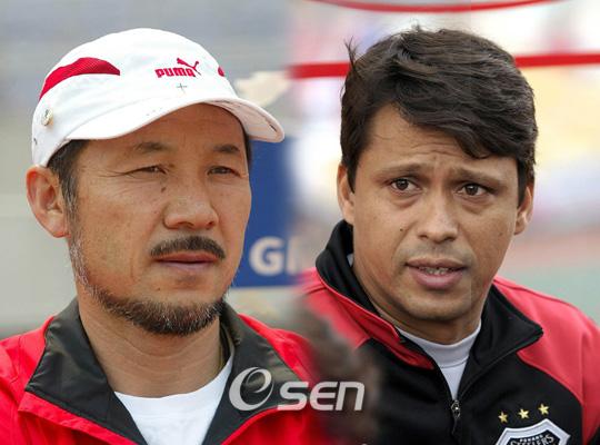 포항과 인천이 급해졌다. 8라운드 결과 선두 수원을 승점 2점 차로 압박했던 포항과 인천은 경기가 없던 지난 14일 수원이 성남에 3-0으로 대승하면서 승점 차이가 5로 늘어났기 때문이다. 이에 포항과 인천은 15일 대전과 대구와 각각 벌일 원정경기에서 꼭 승리해 후기리그 우승 경쟁구도를 지속시키겠다는 각오를 다지고 있다. ▲ 포항, 대전 상대로 골 폭죽 터뜨린다 올 시즌 포항은 대전만 만나면 화끈한 모습을 보여주었다. 4월 15일 맞붙었던 전기리그에서는 포항은 대전과 총 9골을 주고 받으며 5-4로 승리했다. 5월 31일 열린 하우젠컵 경기에서는 2골씩 주고 받으며 비겼다. 이같은 모습은 15일 후기 9라운드 경기에서도 재연될 것으로 보인다. 포항은 최근 절정의 컨디션인 황진성을 공격 일선에 앞세워 대전을 공략할 것으로 보인다. 특히 그는 지난 부산과의 경기에서 2골을 몰아쳤다. 또한 고기구 역시 최근 3경기에서 3골 1도움을 기록하며 공격에 물이 올랐다는 평가를 받고 있다. 여기에 대전이 최근 5경기에서 2무 3패로 승이 없다는 것이 포항의 승리 가능성을 높게 한다. 하지만 대전 역시 절대 물러서지 않겠다는 각오이다. 올 시즌 1무 1패를 기록했기 때문에 후기리그에서는 꼭 승리해 시즌 상대전적에서 동률을 이루겠다는 의지를 표명하고 있다. 여기에 데닐손과 슈바 그리고 정성훈이 호시탐탐 골 기회를 노리고 있다. ▲ 인천, 대구와 힘든 승부 예상 대구 월드컵 경기장에서 경기를 펼치는 인천은 힘든 승부를 벌일 것으로 보인다. 이상하게 대구만 만나면 작아지는 모습을 보이는 인천은 올 시즌 두 번의 맞대결에서 모두 0-0 무승부를 기록했다. 특히 대구는 인천이 창단 후 한 번도 이기지 못한 상대이기 때문에 더욱 부담스러운 상대가 아닐 수 없다. 이에 인천의 선수들은 이번만큼은 꼭 이기겠다는 각오이다. 인천의 스트라이커 김한원은 대구에 대해 "깐깐한 팀" 이라며 "쉽지않은 승부가 될 것이다" 고 밝혔다. 하지만 인천은 최근 5경기에서 4승 1무의 상승세를 타고 있기에 이번만큼은 대구에게 첫 승을 거두겠다는 각오다. bbadagun@osen.co.kr 장외룡 인천 감독-파리아스 포항 감독.