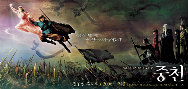 영화 ‘중천’은 죽은 영혼들이 49일간 머무는 가상의 공간인 중천을 배경으로 한 판타지 영화다. 불교의 49재에서 착안해 ‘사람은 죽어서 49일동안 영혼들이 무엇을 할까?’라는 상상력에서 영화는 출발한다. 특히 판타지라는 장르가 한국영화계에서 불모지에 가깝기 때문에 ‘중천’에 대한 기대가 크다. ‘중천’은 일단 정우성 김태희 허준호 등 쟁쟁한 스타급 캐스팅과 판타지라는 장르 특성상 색다른 영화라는 점에서 기대감을 갖게 한다. 하지만 ‘중천’의 흥행관건은 CG(컴퓨터그래픽)에 달려 있다고 해도 과언이 아니다. ‘중천’이 중국에서 100% 올 로케이션으로 진행한 이유도 이와 무관하지 않다. 관객들이 처음 본 배경이어야만 ‘중천’의 판타지 요소가 확실하게 드러난다는 말이다. 여기에 중천이라는 가상의 공간과 중천 속 캐릭터들의 움직임은 상상력에서 의존해야 하기 때문에 CG는 필수적이다. 게다가 ‘중천’의 CG작업은 해외의 유명 회사가 아닌 국내 12개 업체가 참여해 주목을 받고 있다. DTI, 한국전자통신원 등 12개 업체가 특성별로 CG를 분담해 중천에서 펼쳐지는 액션을 만들어 낸다. 10월 14일 부산 해운대 그랜드호텔에서 열린 ‘중천으로의 초대’ 행사에서 ‘중천’의 CG작업이 하이라이트와 메이킹 영상으로 살짝 공개됐다. 하이라이트 속 CG는 분명 뛰어난 것이었고, 메이킹 영상에는 CG 작업에 자신감을 보이는 제작진의 모습이 소개됐다. 한국영화의 CG는 과거와 달리 괄목할 만한 성장을 해왔다. 최근 한국영화 흥행기록을 다시 쓴 ‘괴물’도 해외 유명 CG업체의 작업을 통해 CG의 진보를 보여준 바 있다. 하지만 여전히 한국영화의 CG는 할리우드의 것과 비교해서는 부족한 면이 많다. ‘중천’이 과연 한국영화 CG의 진일보한 성장을 이뤄낼 수 있을지 귀추가 주목된다. 죽음 이후에도 끝나진 않은 인연과 운명적 대결을 그린 ‘중천’은 12월 21일 개봉할 예정이다. pharos@osen.co.kr